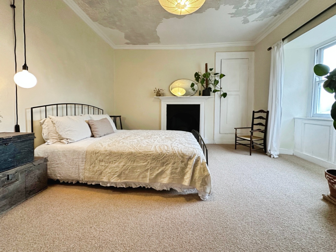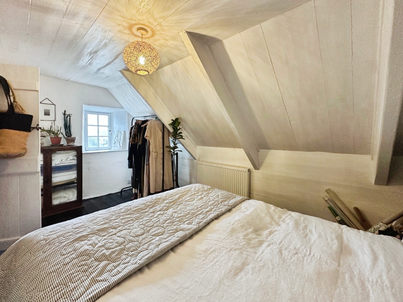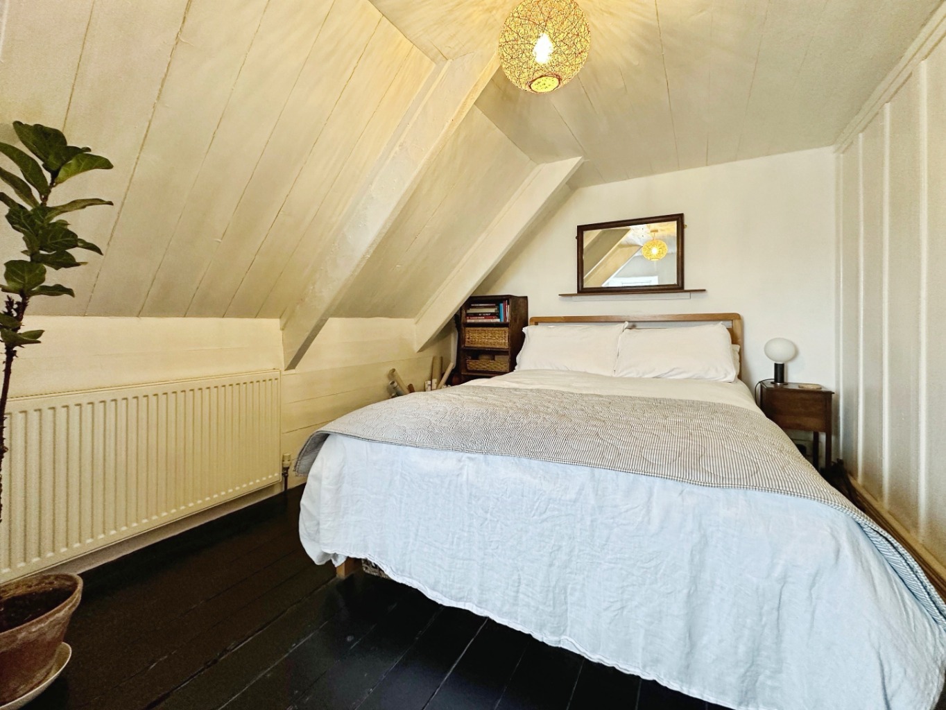 The ground floor features a characterful kitchen with a traditional Cornish Range (not currently in use), alongside a spacious sitting room complete with an open fire, creating a warm and inviting atmosphere. To the first floor, there are two bedrooms and a bathroom, while the second floor provides two further attic bedrooms, offering flexible accommodation for family living, guests, or home working.