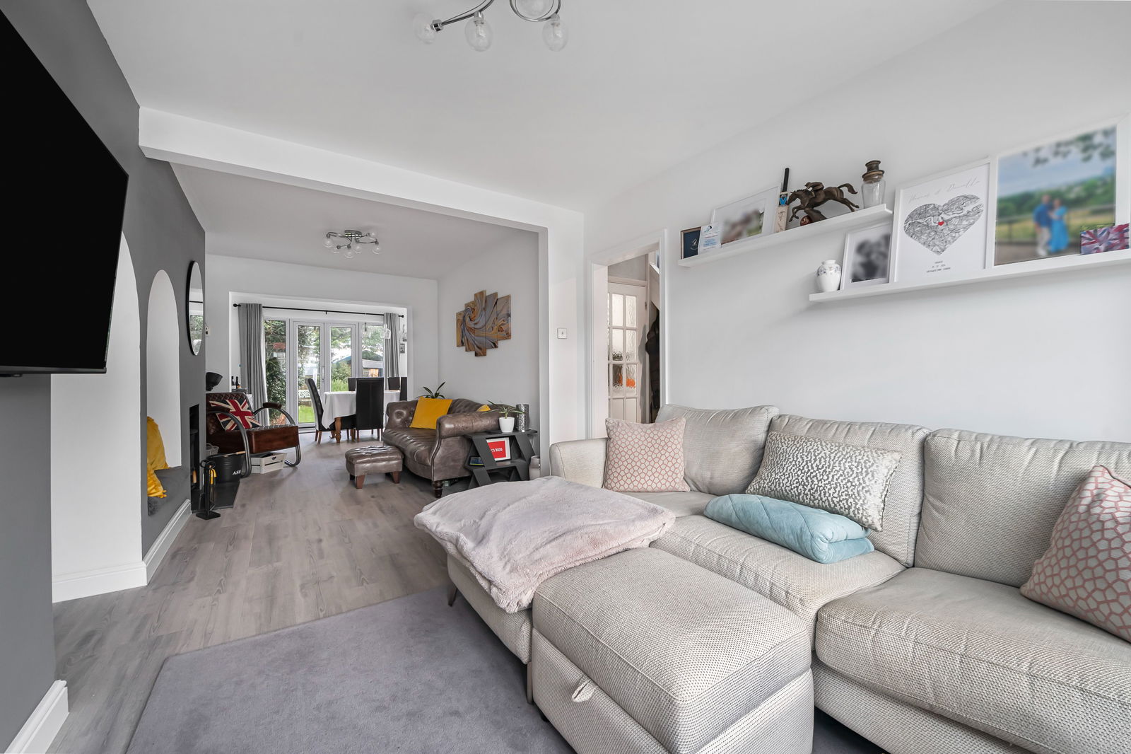Three-bedroom semi-detached home with no onward chain, featuring a large lounge/dining room, fitted kitchen, family bath...