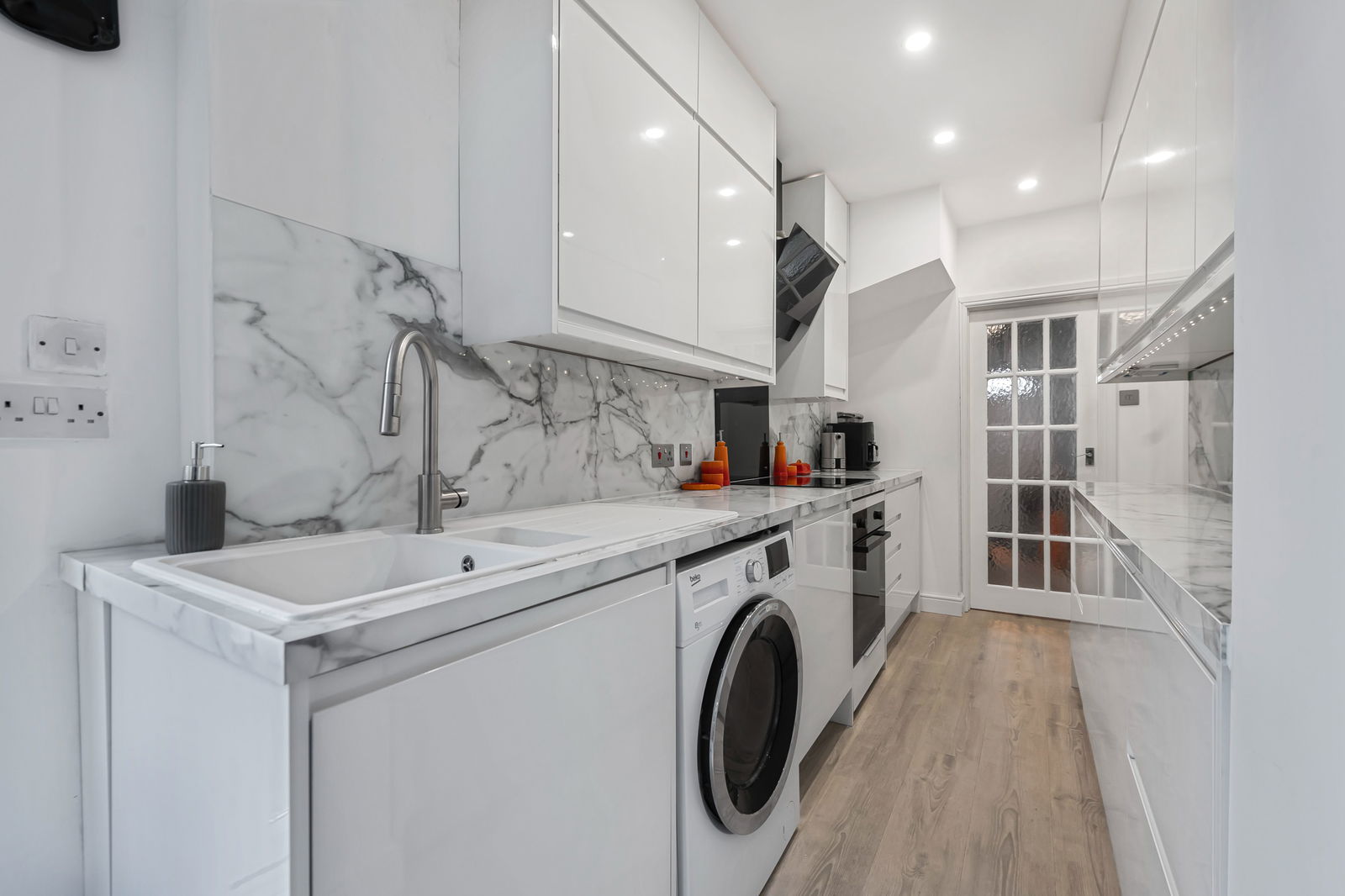 The ground floor features a bright and generously sized reception room that seamlessly flows into a dedicated dining area at the rear of the property, creating an excellent space for both everyday living and entertaining. Adjacent to this, a modern fitted kitchen provides practical space for culinary pursuits.