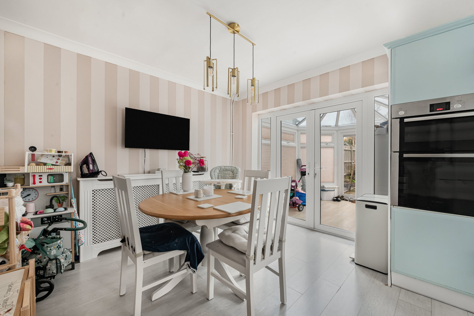 Upstairs, the property offers two generous double bedrooms alongside a third bedroom, ideal as a child’s room, guest room or home office. A family bathroom serves the first floor.