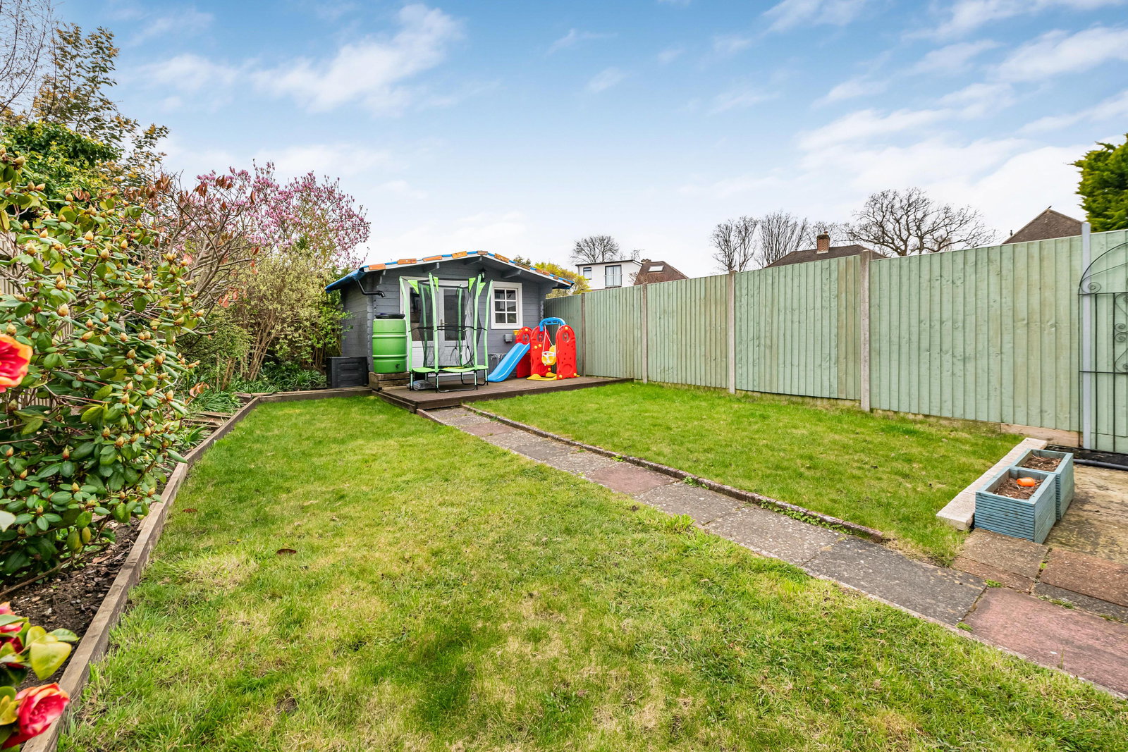 Externally, the property benefits from a private rear garden, mainly laid flat and ideal for outdoor enjoyment. At the end of the garden, there is a useful cabin/garden room, perfect for use as a home office, studio, or additional leisure space. To the front, a driveway provides off-street parking for multiple vehicles.