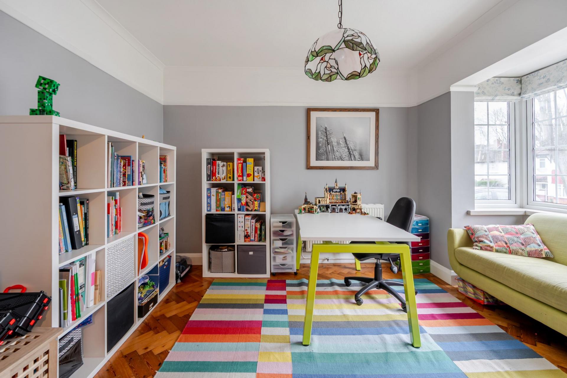 The separate dining/additional reception room, also enjoying the continuation of the attractive wooden flooring, offers an excellent setting for formal family dinners or could be utilized as a study/playroom.