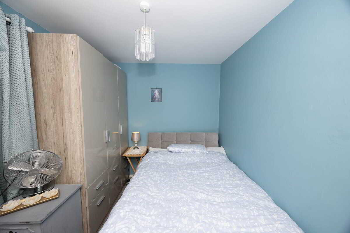 There are two comfortable bedrooms and a family bathroom complete with a corner bath and walk-in shower enclosure.