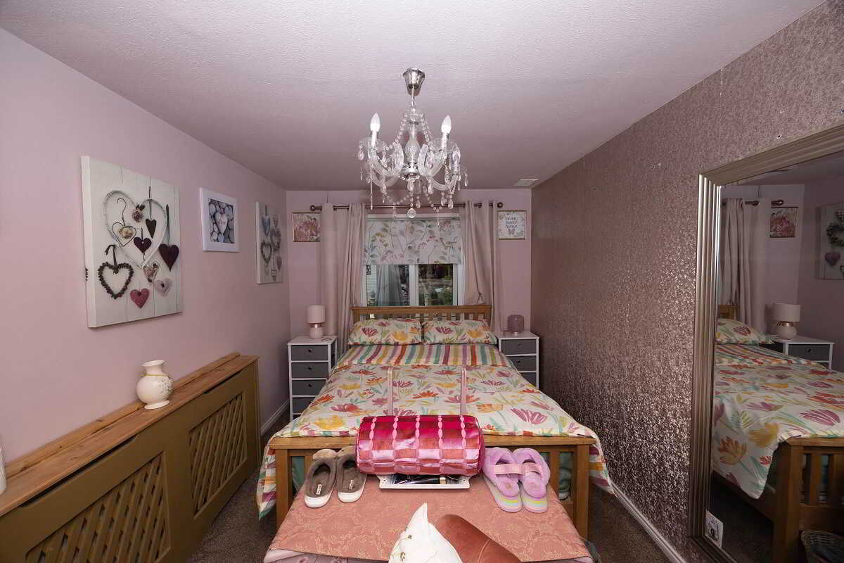 The lounge, with its welcoming fireplace and patio doors, feels made for cosy evenings, while the master bedroom offers something truly special doors opening directly to the garden. Imagine stepping outside with your morning coffee, listening to the birds in the mature trees, knowing that this peaceful space is all yours.