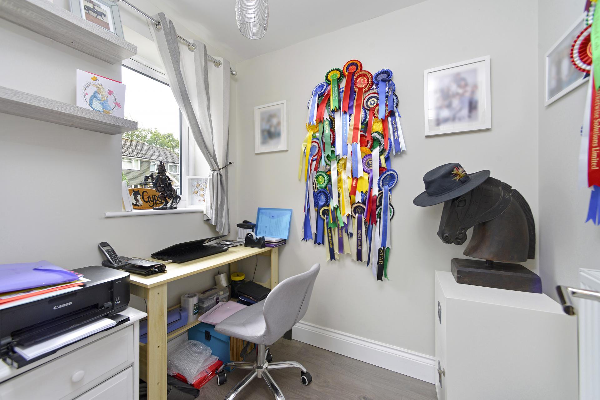 An extended and much improved four bedroom semi detached home situated in this popular residential area. You are greeted by a most welcoming reception hall with sitting room, study and cloakroom off and from the hallway the accommodation flows into an impressive open plan kitchen/dining/family room with doors opening to the garden. Stairs rise to the first floor where there is a spacious landing, principal bedroom with ensuite shower room, three further bedrooms and a modern fitted family bathroom. Outside, the property has plenty of driveway parking and side access to the rear garden where there is a paved patio leading onto a lawned areas with flower and shrub borders around with the rear boundary backing onto an open grass square, all enjoying a bright and sunny south and westerly aspect. There is a detached insulated home studio/dog grooming room with power and light. We highly recommend a visit to fully appreciate the accommodation on offer.