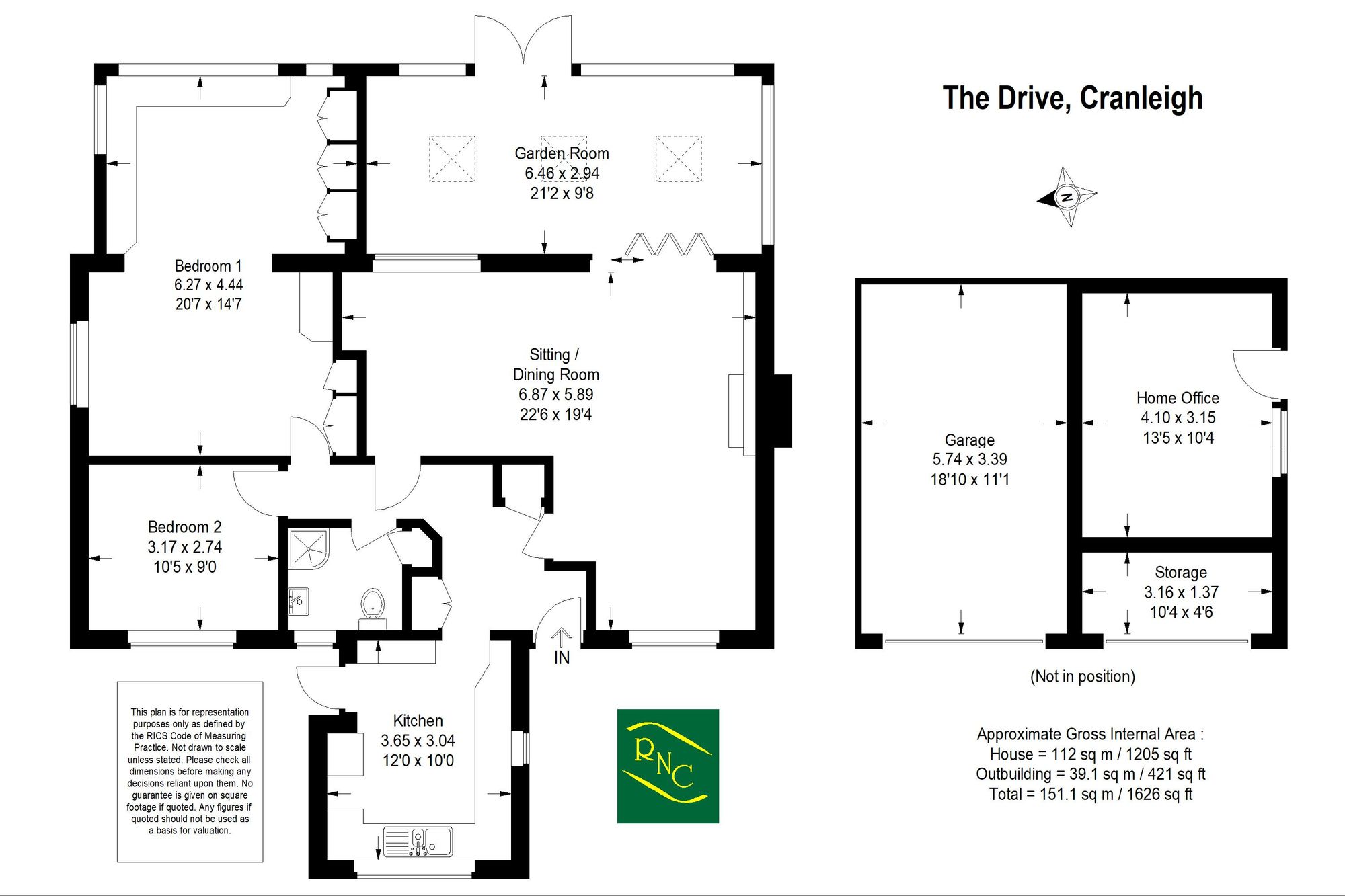 Additional features include; Approx. 112 sq m / 1,205 sq ft internal house area. Detached garage, office & storage totalling 421 sq ft. Plot offering future potential (STPP). Situated moments from Cranleigh village centre, local schools, and amenities.