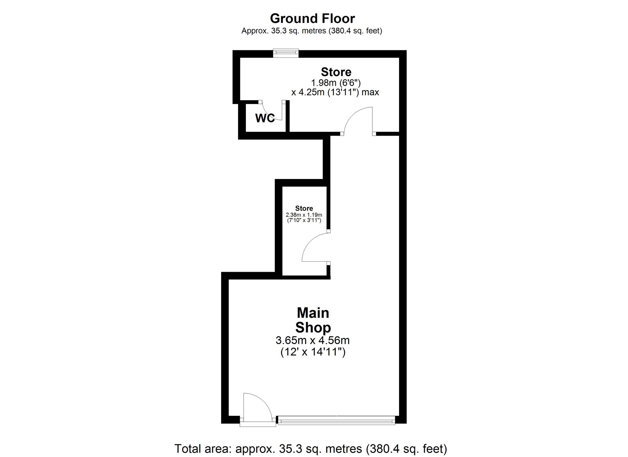 - 35sq metres / 380sq ft