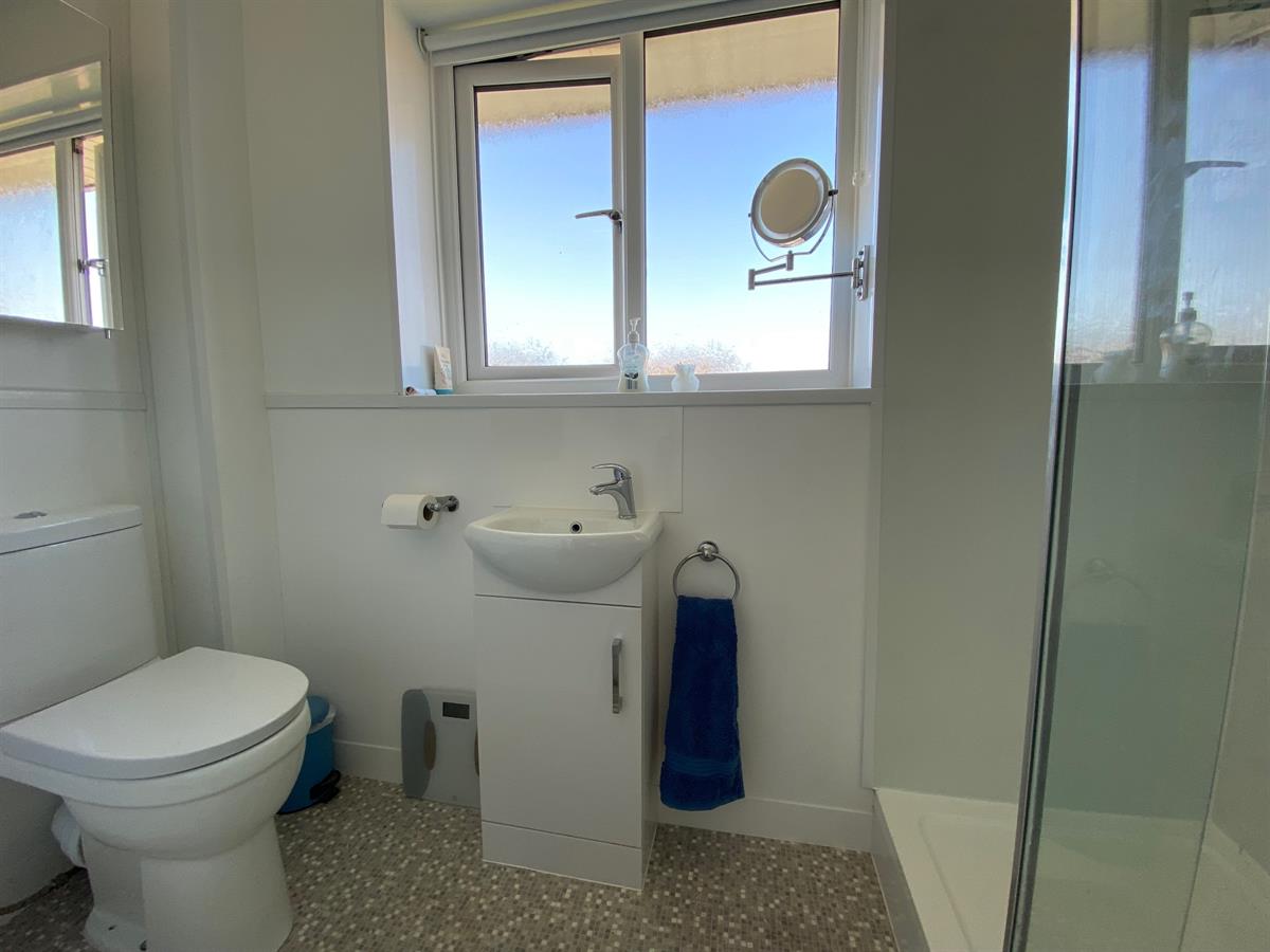 Fitted with a three piece suite comprising, push button low level WC, vanity unit wash hand basin with mixer tap and storage cupboard below, walk in shower enclosure housing a mixer shower, single radiator, inset spot lighting, built in storage cupboard.