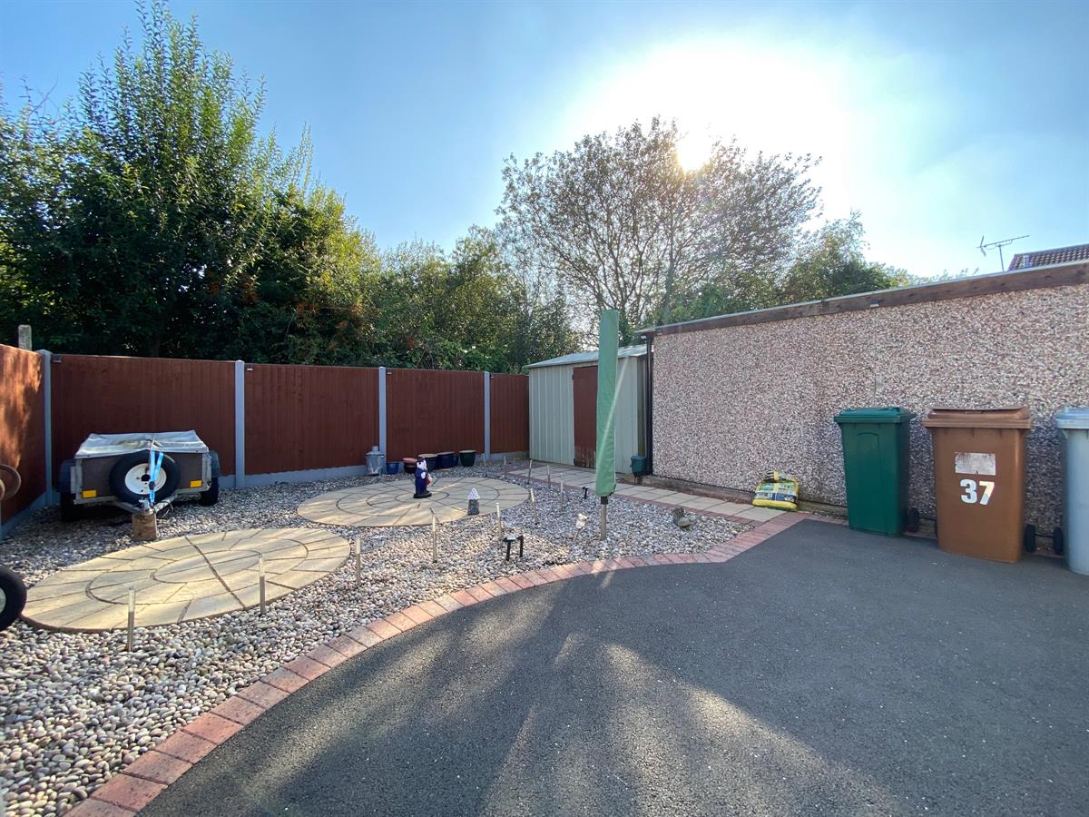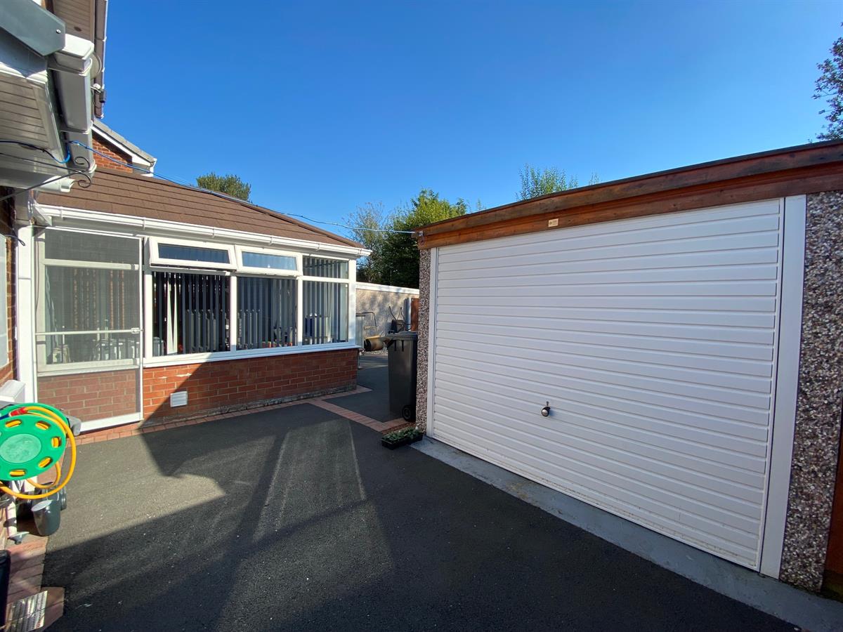 To the rear there is an enclosed low maintenance garden with fenced boundaries and a detached garage.