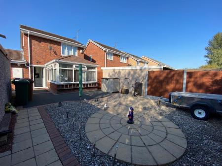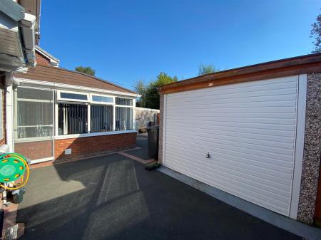 To the front of the property there is tarmac driveway with decorative red brick edgings providing off road parking for several vehicles, double wooden gates leading to the rear garden and garage.