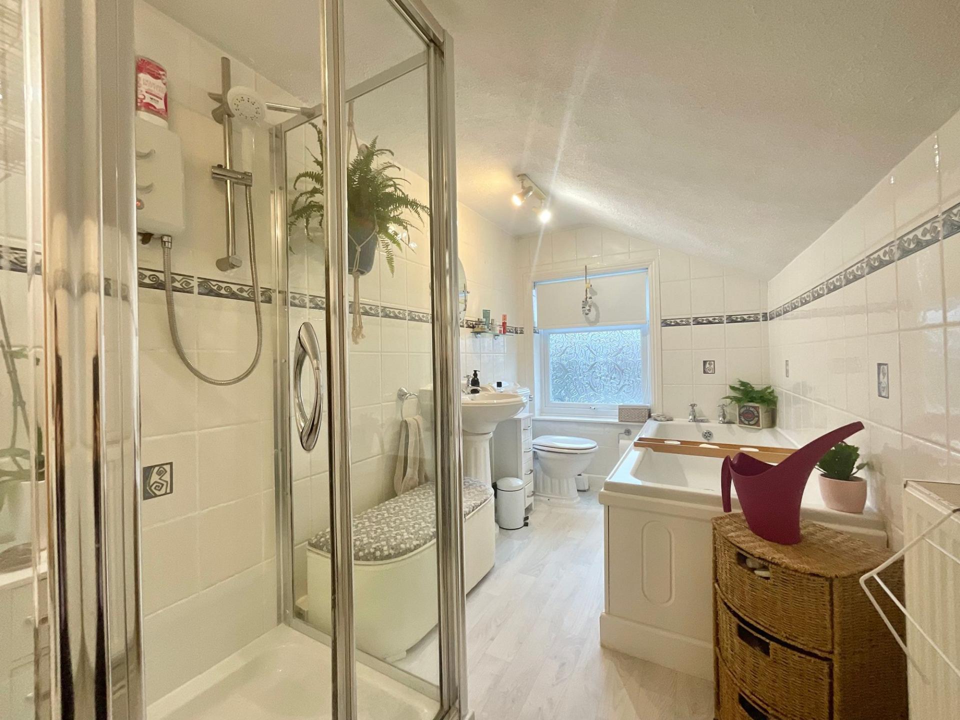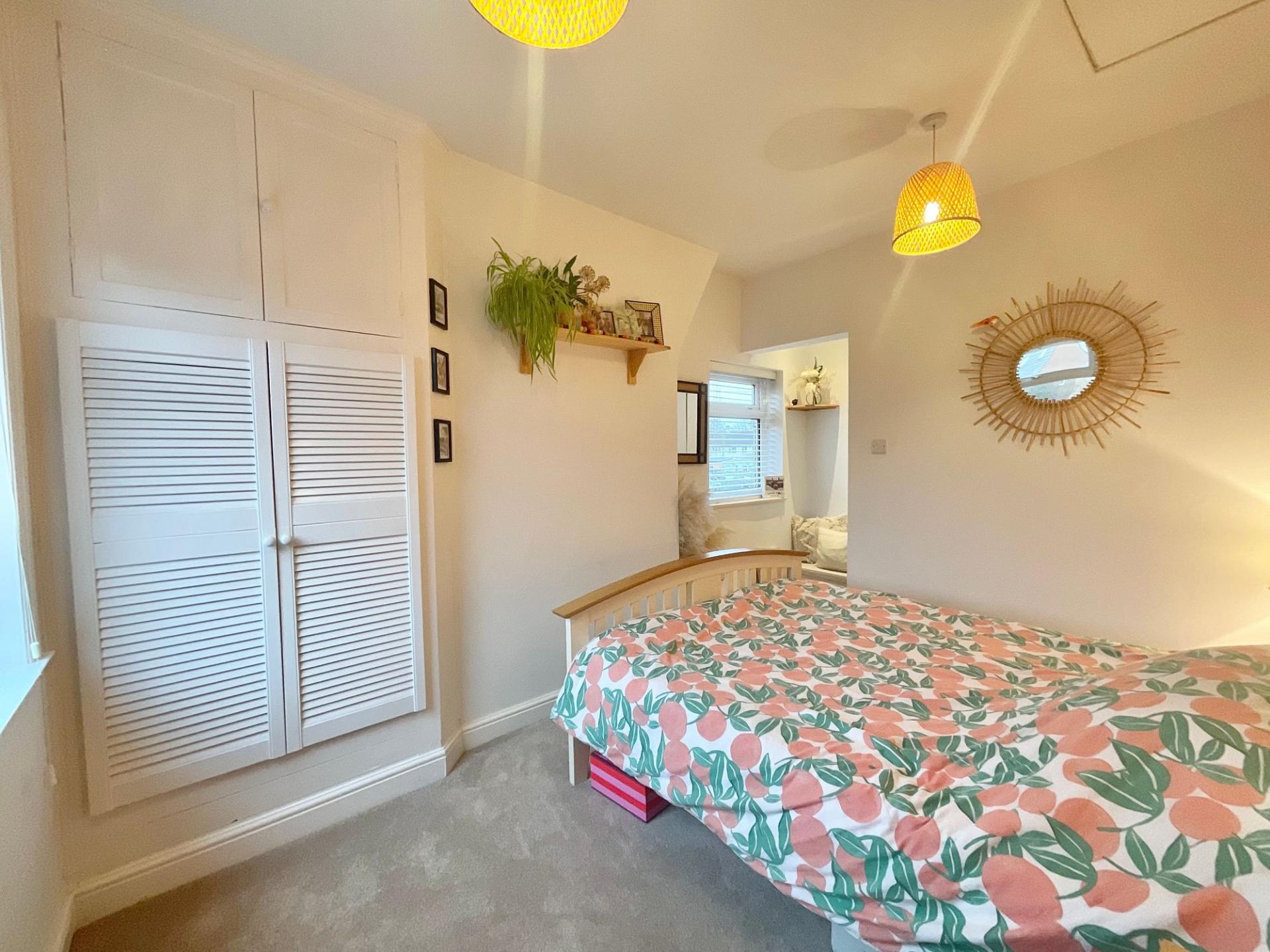 - Two double bedrooms, including one with built-in wardrobe and dual-aspect windows.