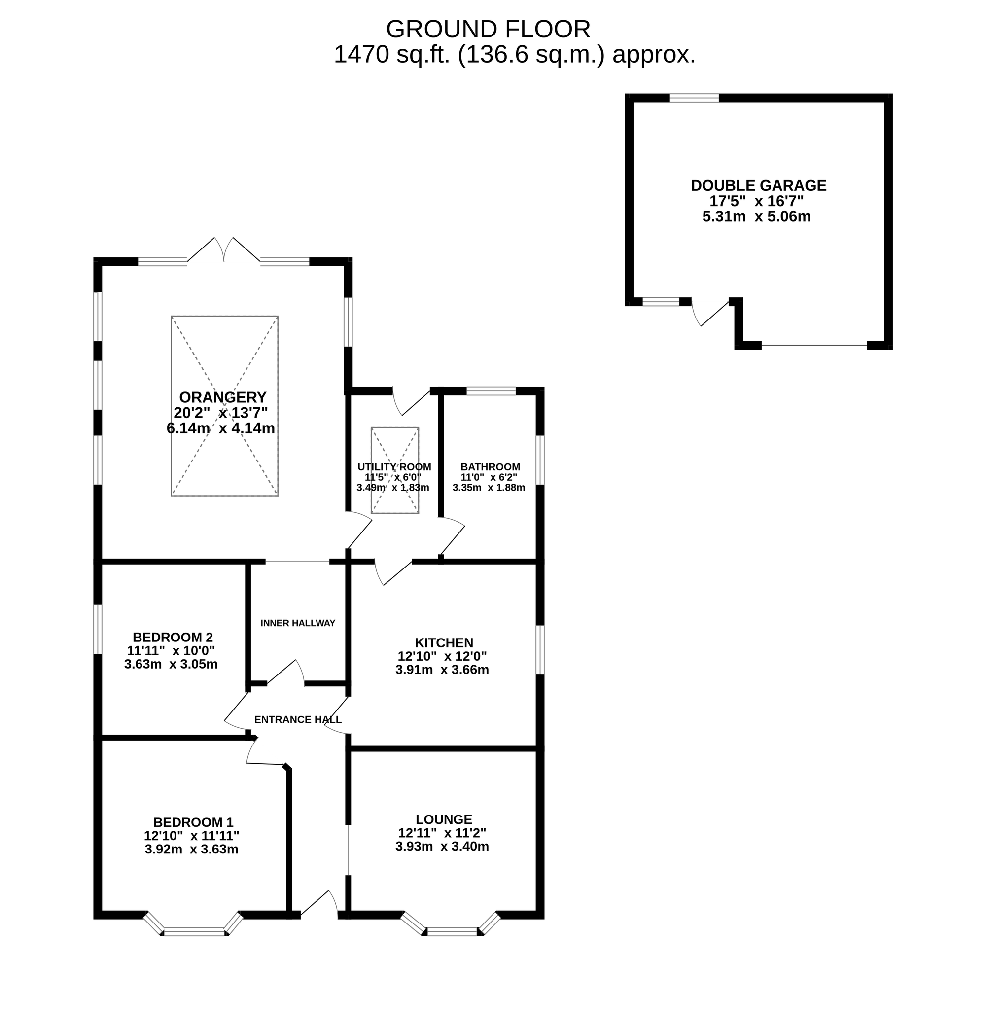 - Beautifully extended two-bedroom bungalow with impressive light-filled orangery