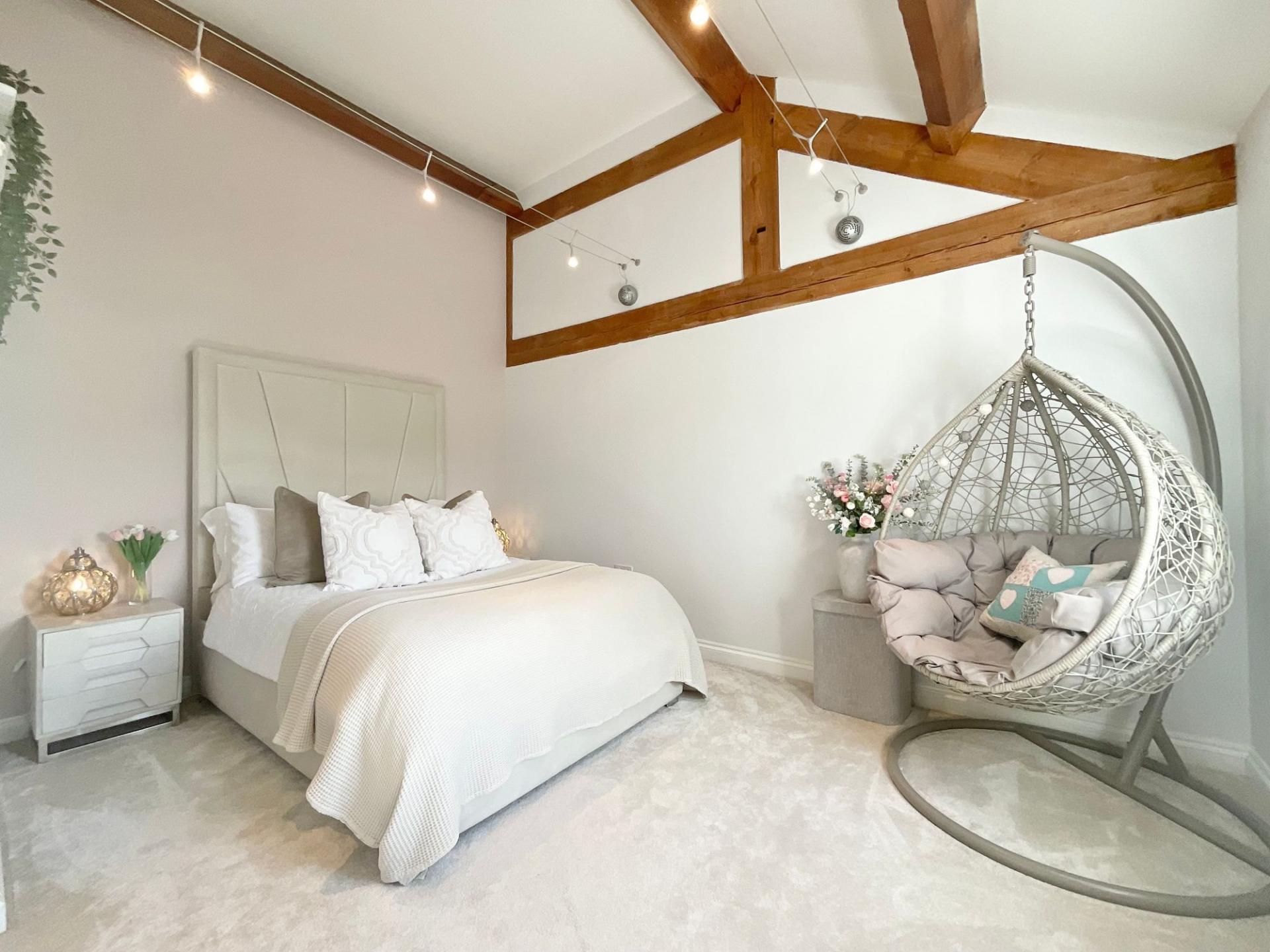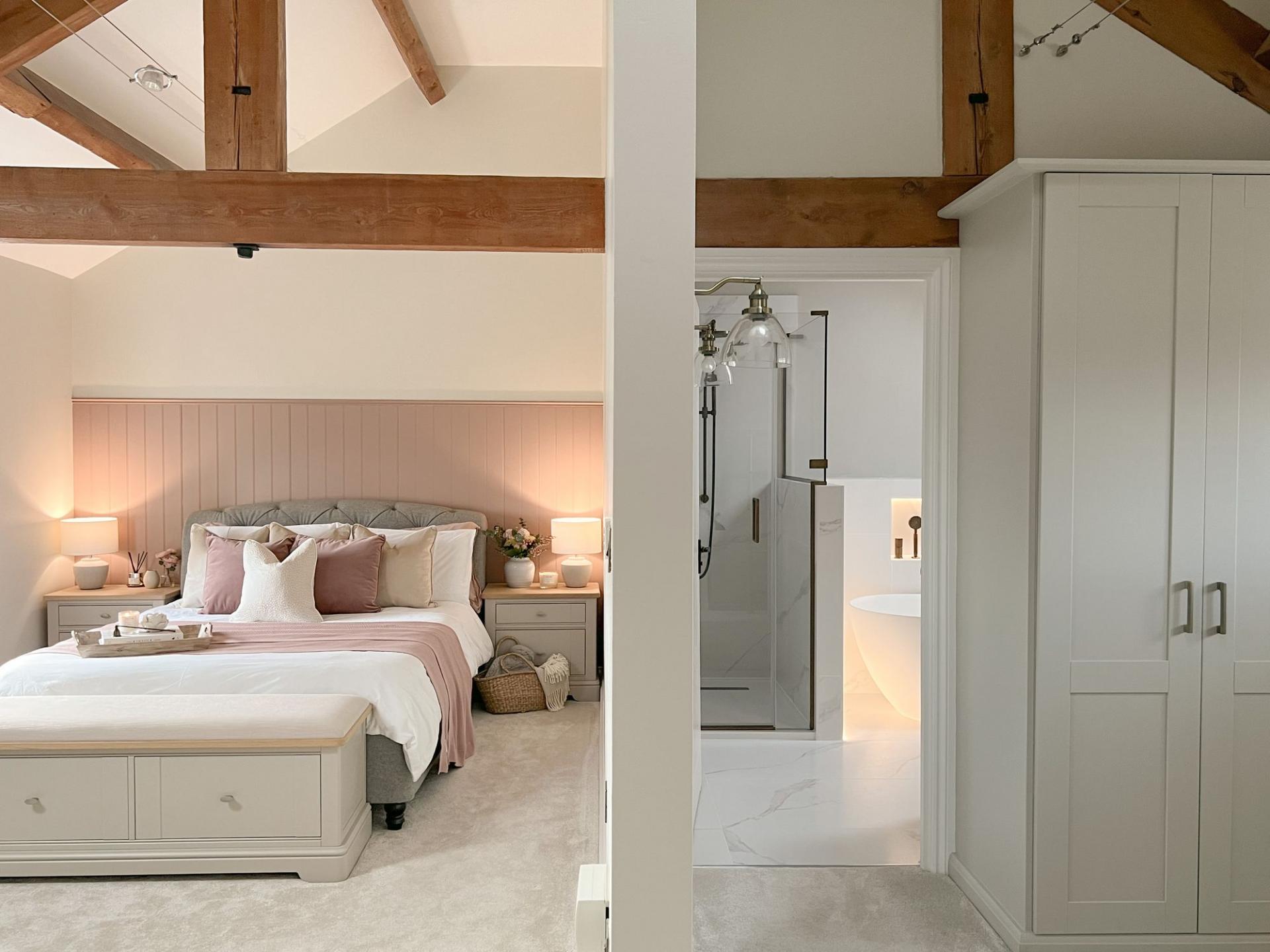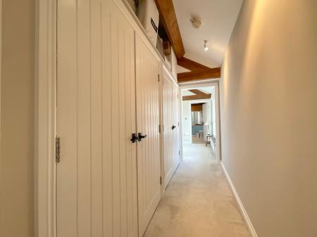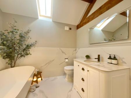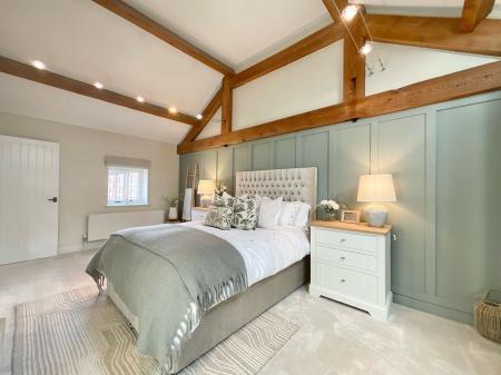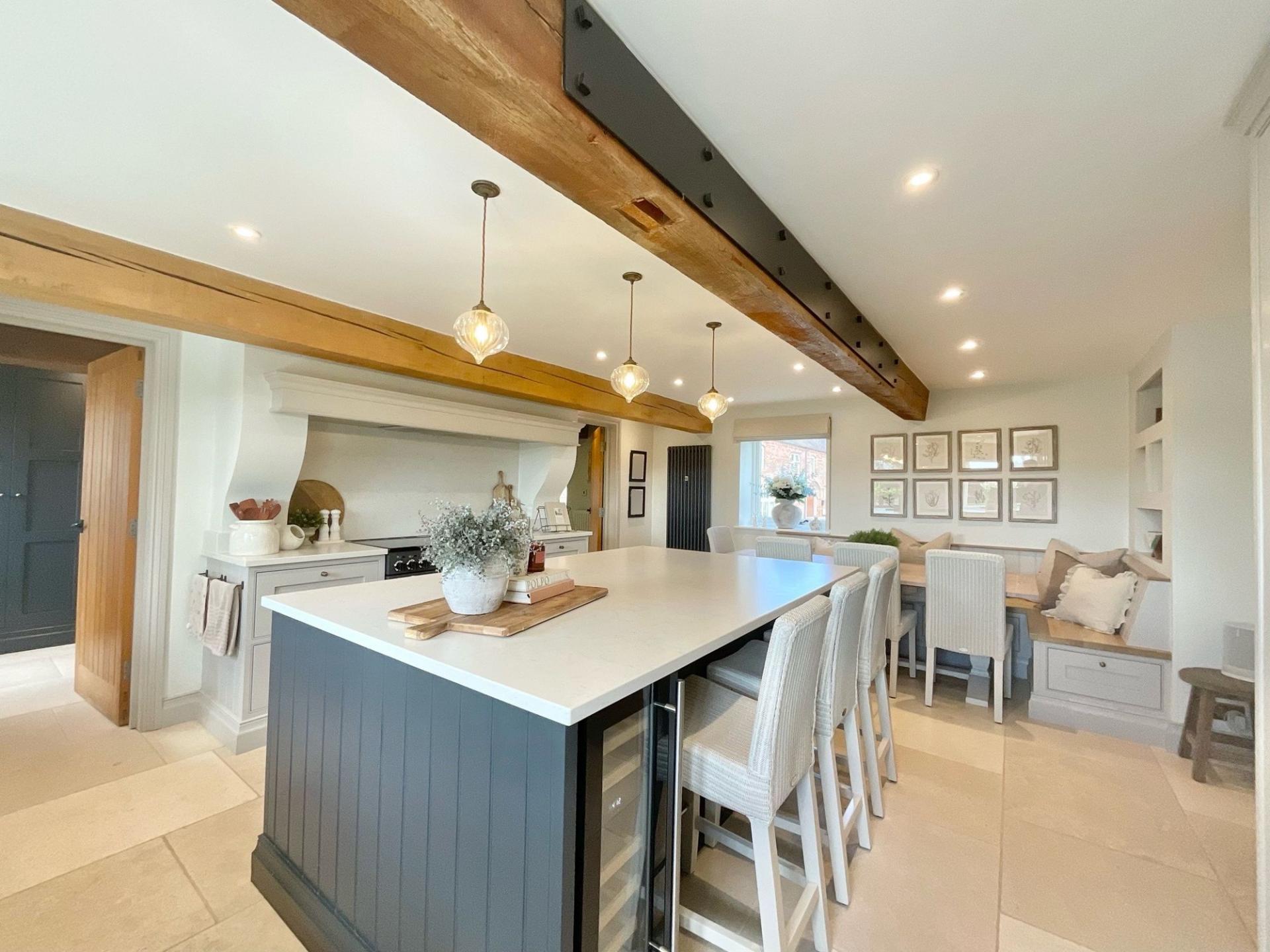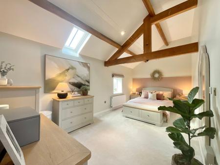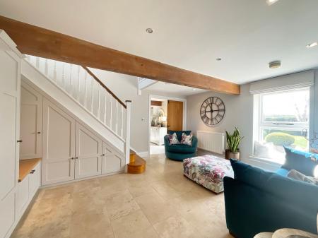 - Stylish barn conversion blending modern country design with retained character features, including exposed oak beams, throughout.