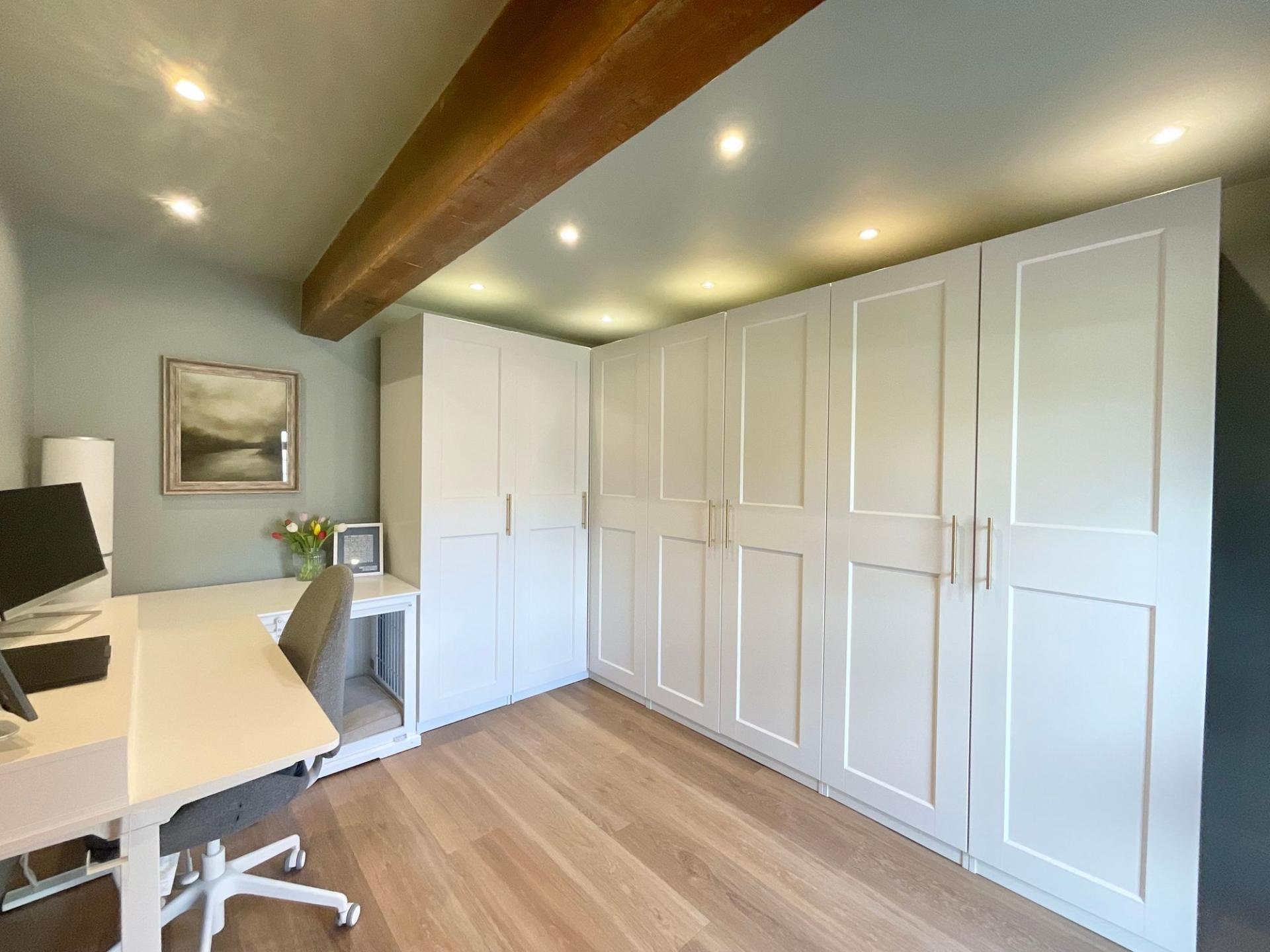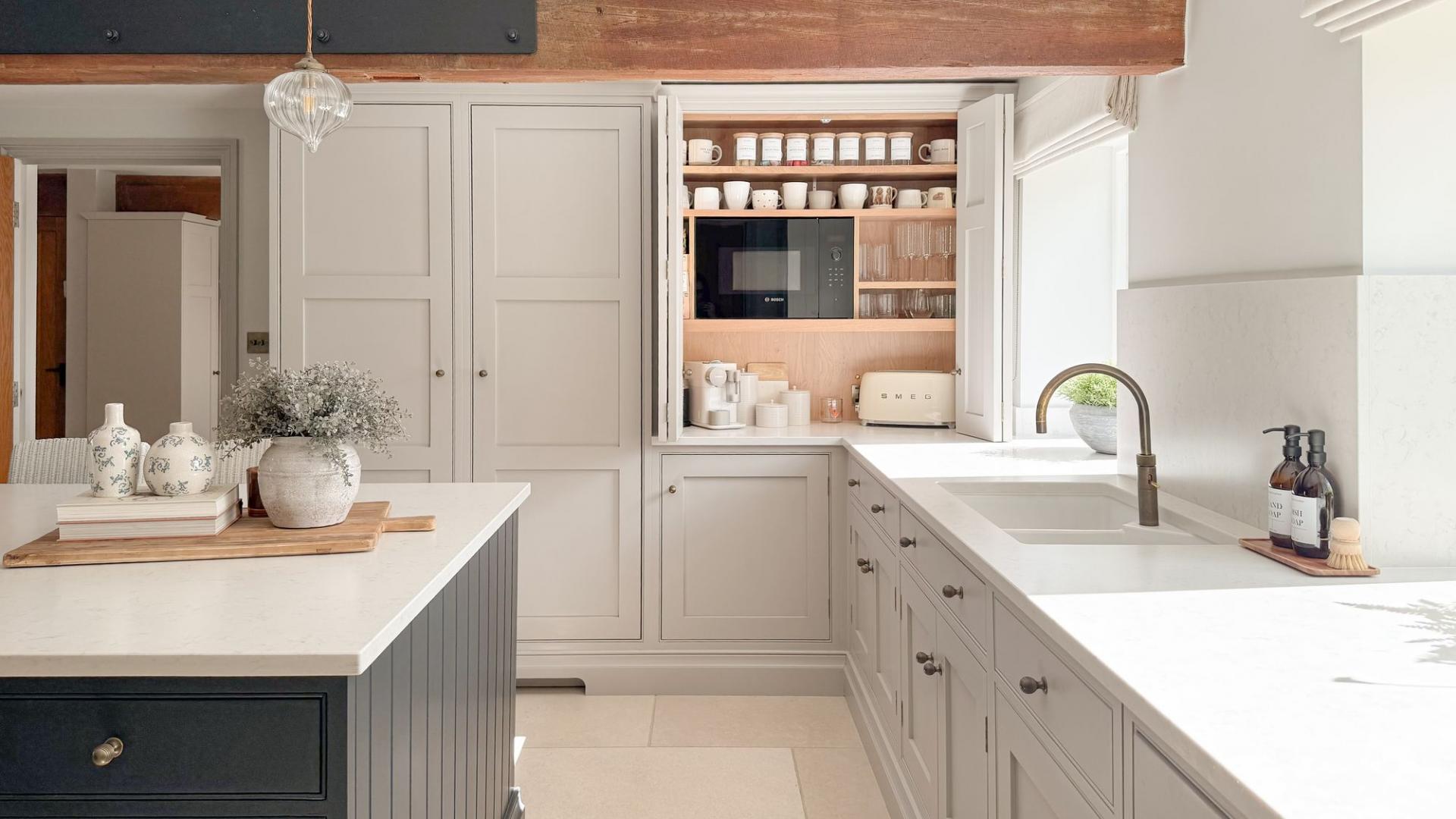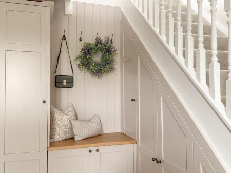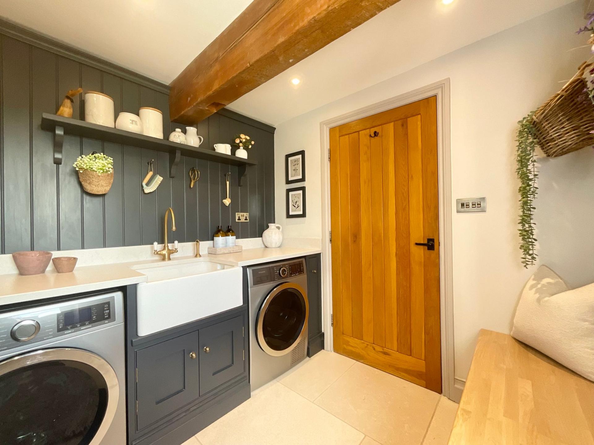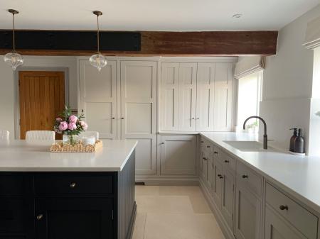 - Bespoke hand-painted wooden kitchen with high-end integrated appliances and Quooker boiling tap (with Cube for filtered chilled and sparking water).