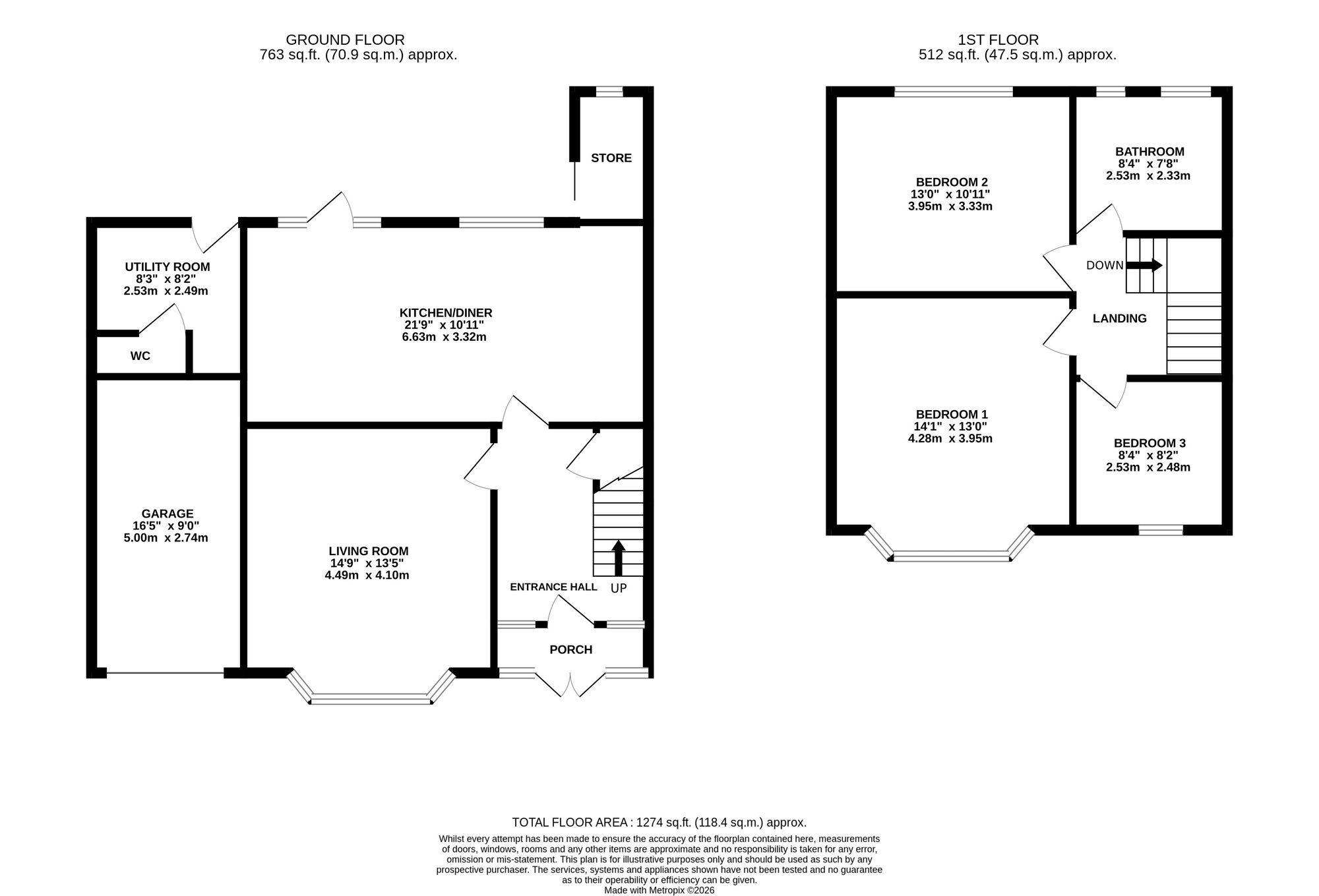 - Generous living room with large bay window and wood burner.