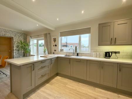 - Sleek open-plan kitchen/diner with integrated appliances, breakfast bar, utility room, and WC.