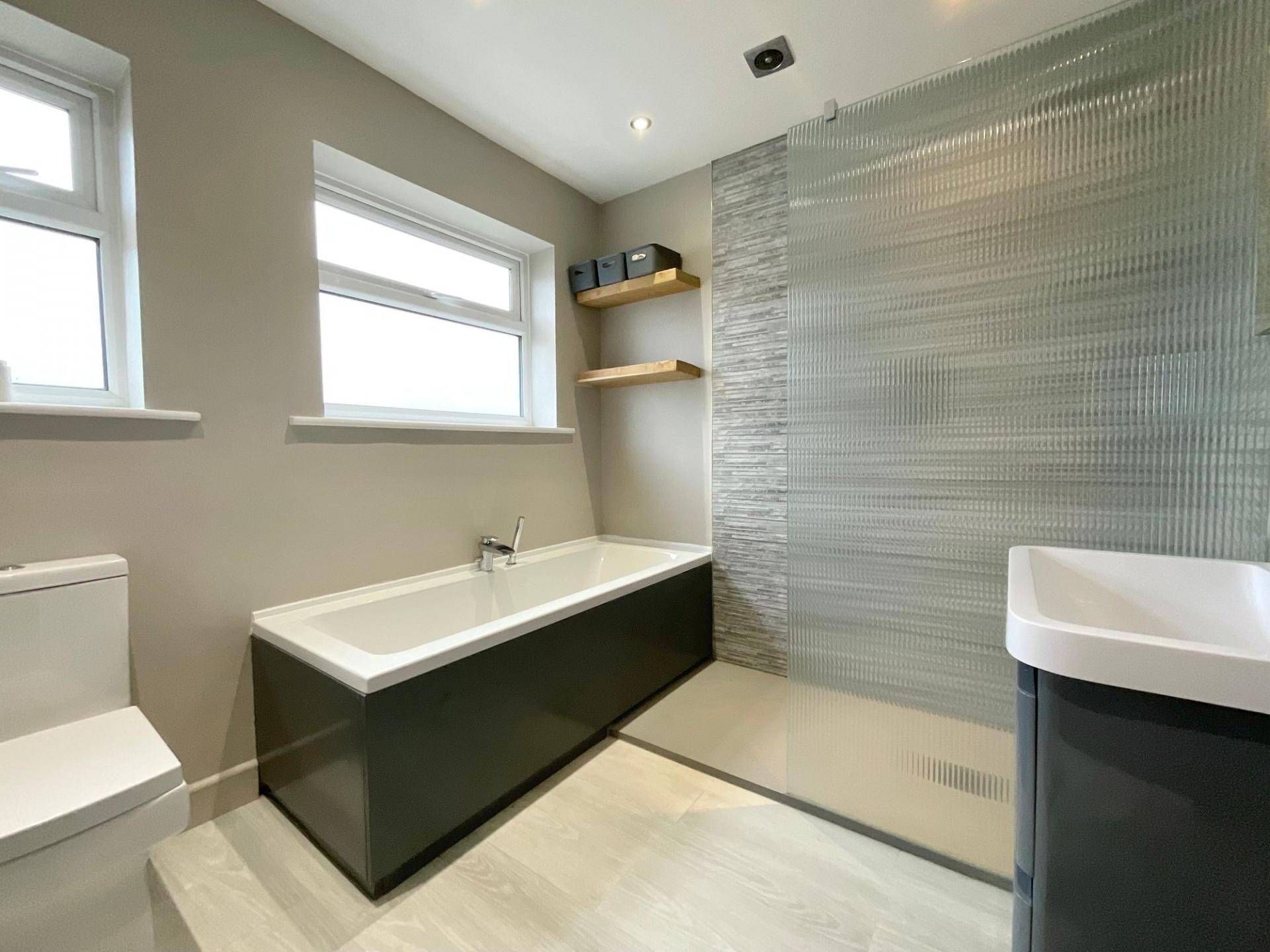 - Three bedrooms including two large doubles, plus a stylish bathroom with bath and walk-in rainfall shower.