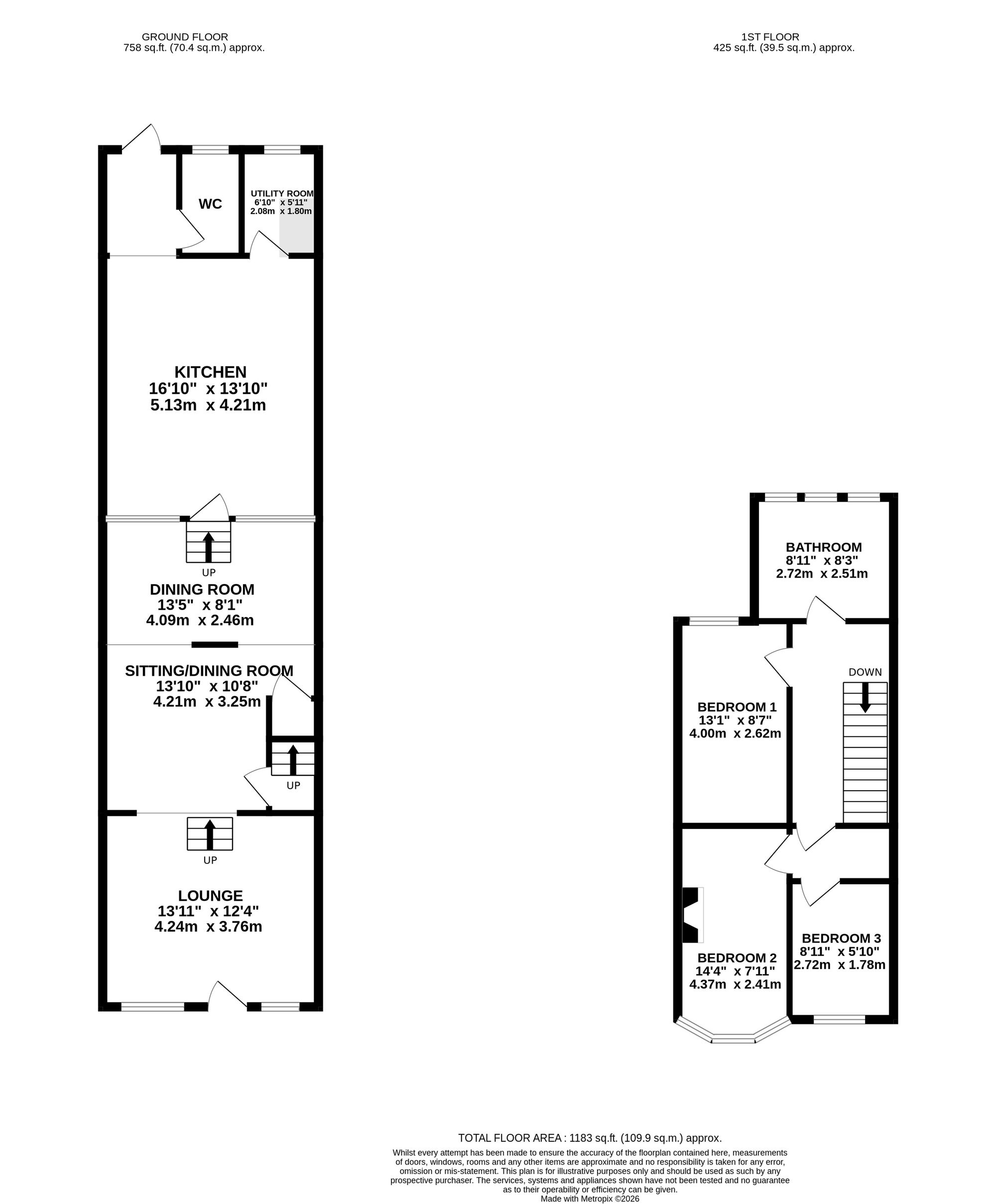 - Spacious fitted kitchen with room for a table, plus utility room/pantry and ground floor WC