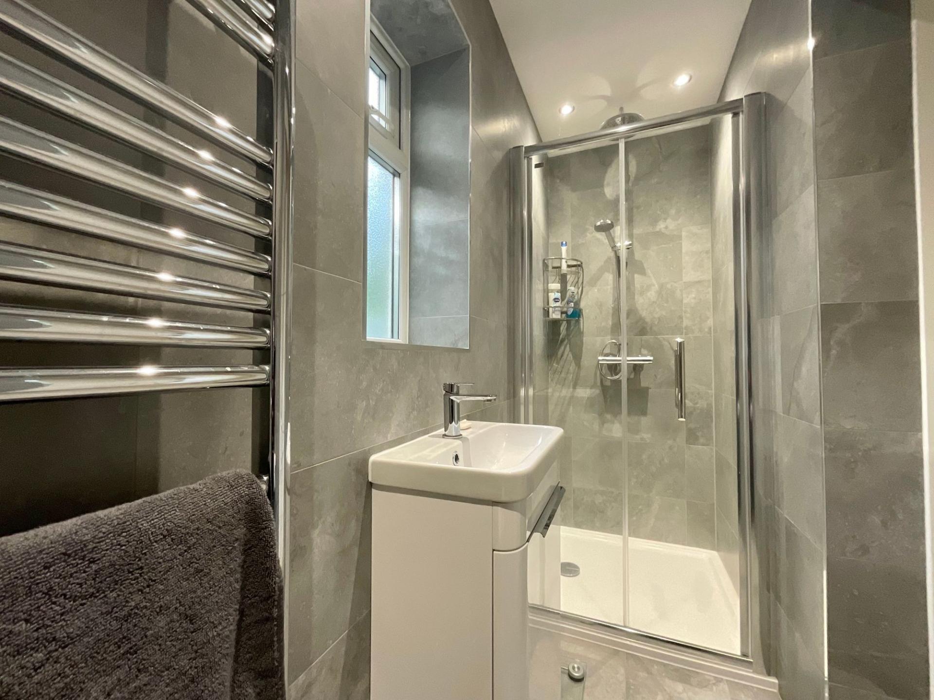 - Stylish bathrooms – Contemporary ensuite with dual shower heads, including a rain shower, and a family bathroom with bath, overhead shower, and vanity storage.