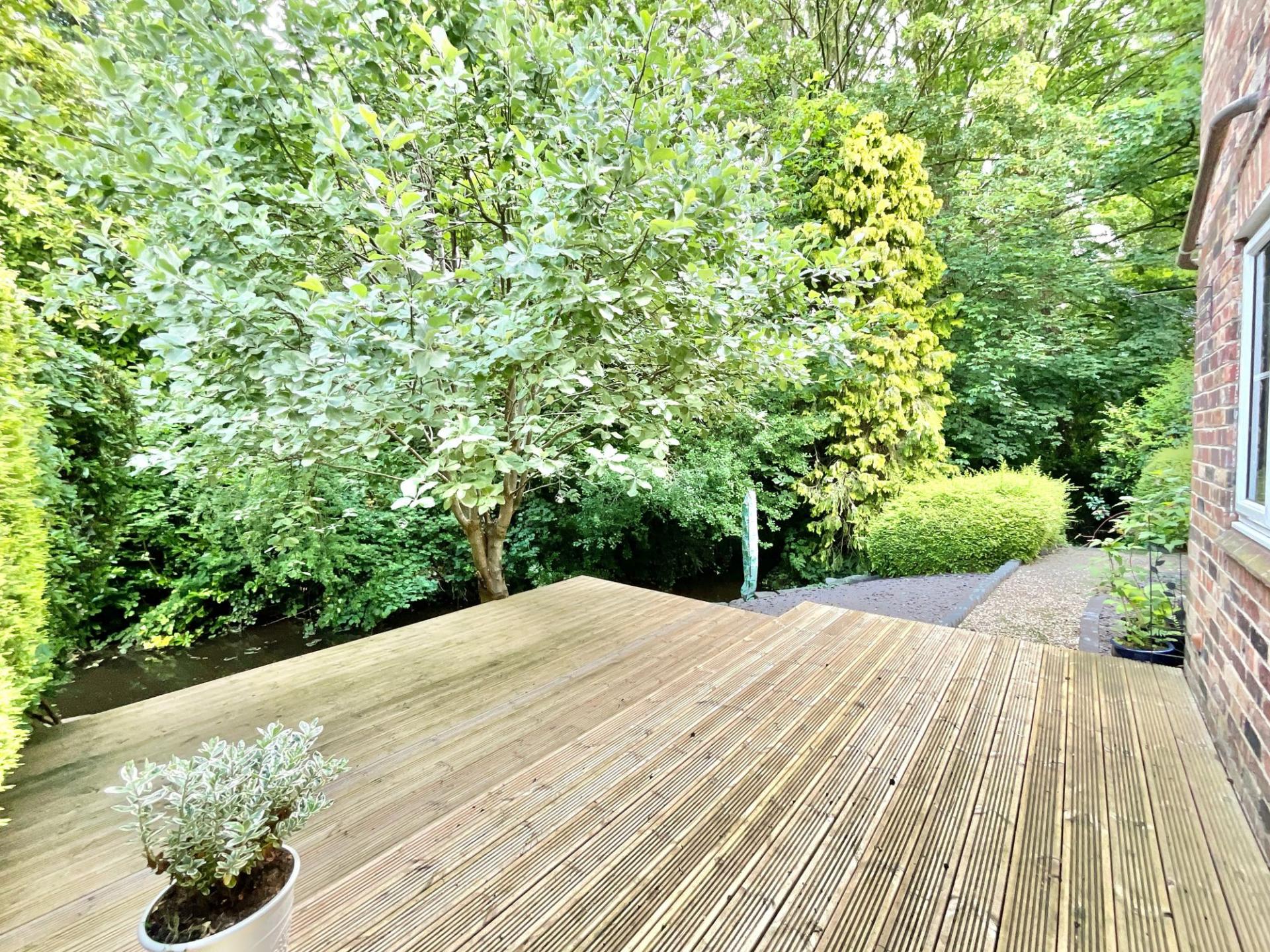• Outside, a riverside retreat awaits with an initial rear garden to enjoy with a lovely decking area, while further along the river a large patch of lawn and shrubs is in need of your creative touc...