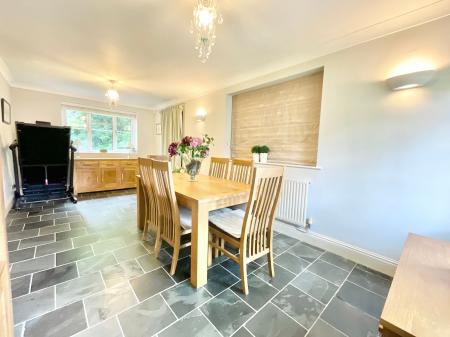 Pull up on the driveway and meander to the front door. Step into an entrance hall that flows seamlessly into the main hallway and guest cloakroom. Follow the current to the show-stopping kitchen/breakfast room, which is a stylish, stream-lined space fitted with a range of Neff appliances including a fridge/freezer, hide & slide oven, hob, cooker hood, microwave and dishwasher, as well as bespoke cabinetry and glistening Quartz worktops. A breakfast bar makes morning coffees feel like a stay at a boutique waterside café. Glide into the spacious living room, where a feature fireplace warms the space and French doors open to riverside decking, a picture-perfect spot for soaking in the serene soundtrack of trickling water. Adjacent, a generous dining room with dual-aspect windows is ideal for hosting everything from flowing conversations to lavish dinner parties. There's even access to the integral garage for extra convenience.