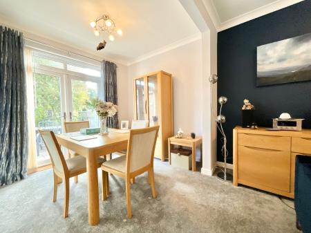 - A beautiful lounge with a fireplace that leads into the open plan dining room with French doors out to the garden.