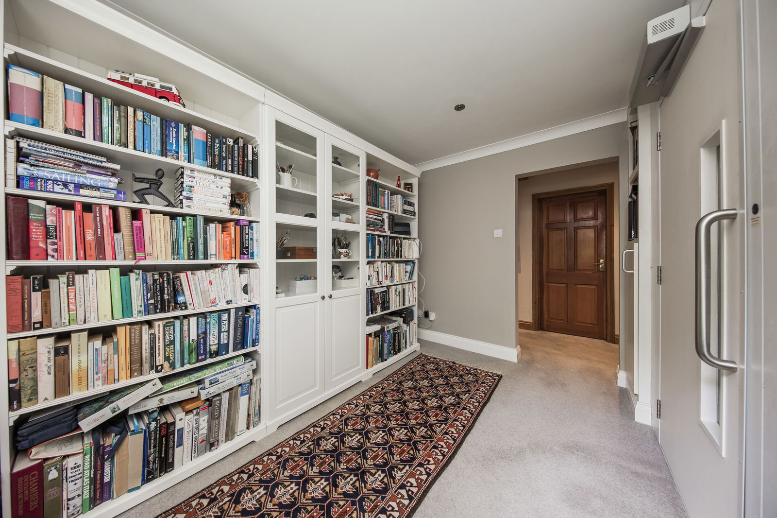 DRESSING ROOM: Space for wardrobe storage, fitted carpet and door into: