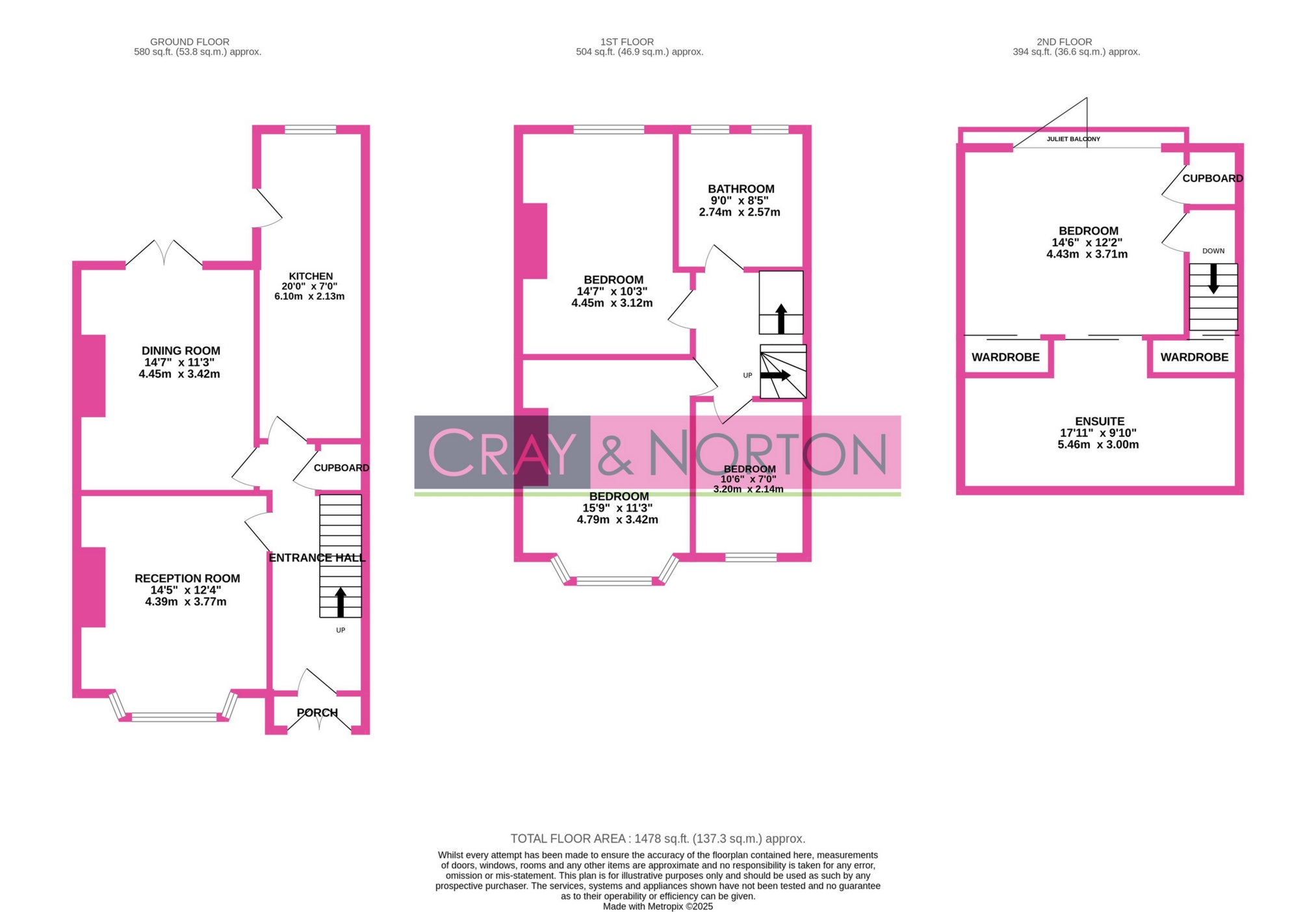 Cray & Norton Estate Agents, their clients and any joint agents give Notice that they have no authority to make or give any representations on warranties in relation to the property. Any statements on which a purchaser wishes to rely must be checked through their solicitor or conveyancers. These Particulars do not form part of any offer or contract and must not be relied upon as statements or representation of fact. Any areas, measurements, dimensions are approximate and must be independently verified. The text, photographs and plans are for guidance only and are not necessarily comprehensive. It should not be assumed that the property has necessary Planning, Building Regulation or other Consents. We have not tested any appliances, services, facilities or equipment and Purchasers must satisfy themselves as to their adequacy and condition. We have not investigated Title, or the existence of any Covenants or other legal matters which may affect the property.