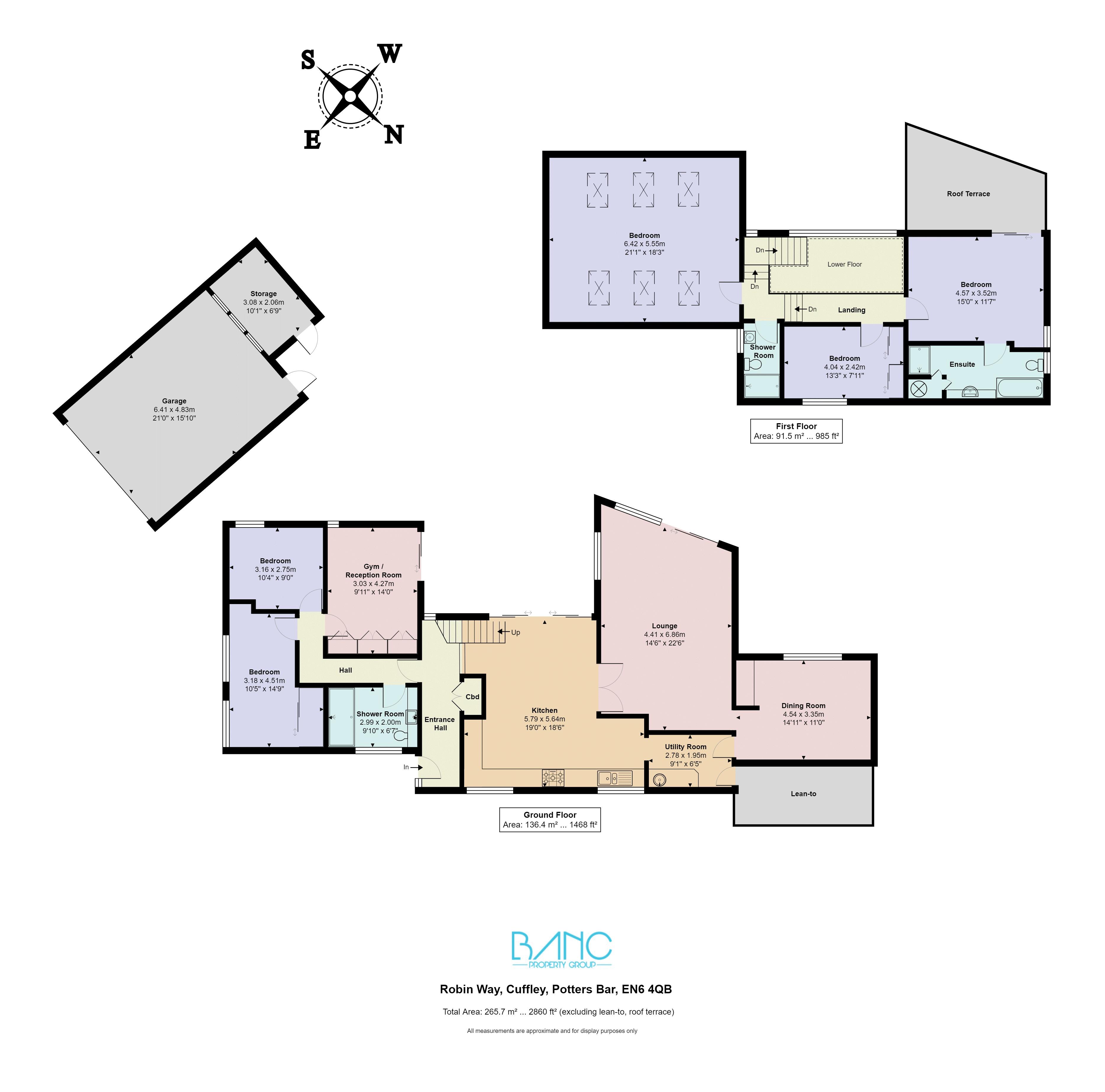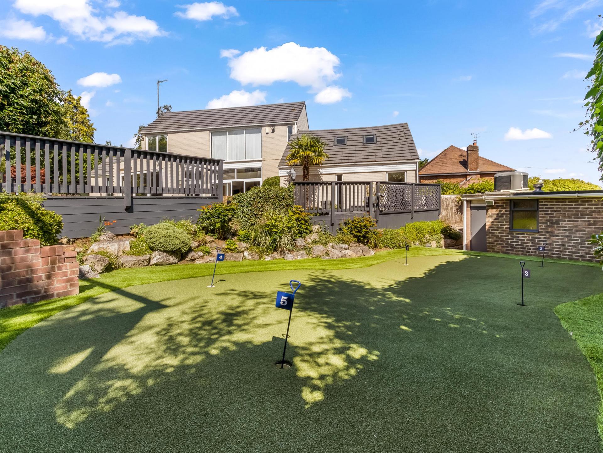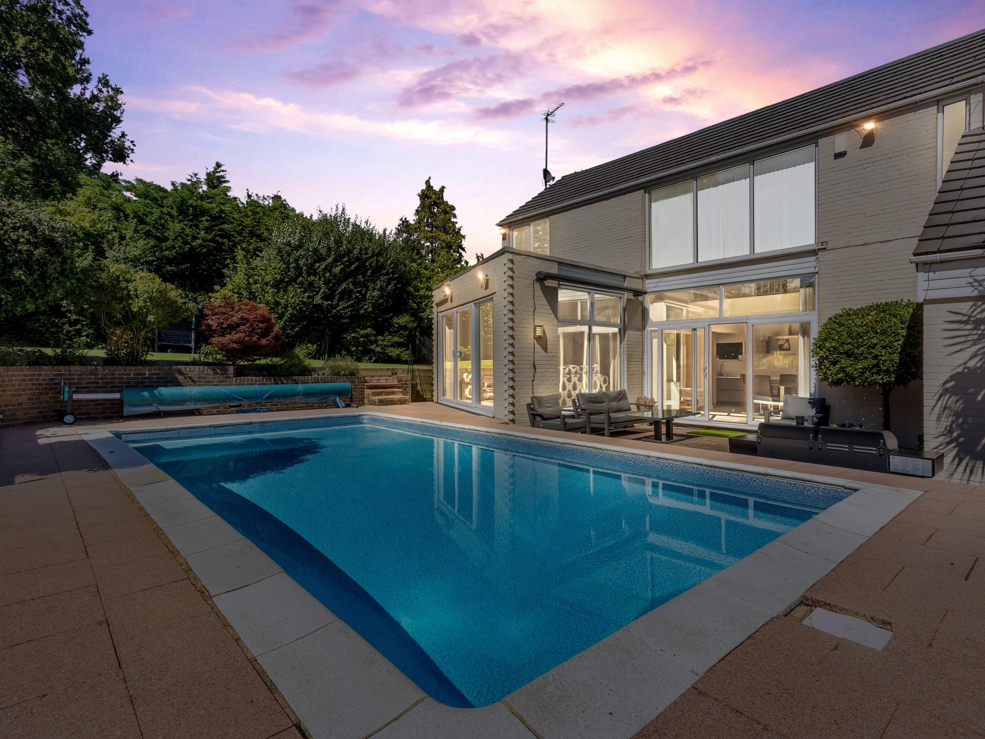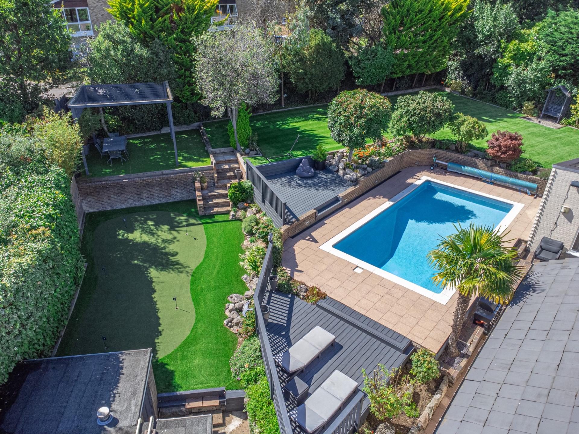 Set in a quiet cul-de-sac location just off Tolmers Avenue you will find this wonderful architect designed 5-bedroom home. This truly stunning property boasts close to 3000 square feet of flexible living space and offers much scope and potential to extend and enlarge STPP, with part of the property that could become a self-contained annex. The accommodation consists of an entrance hallway, lower ground floor with 2 bedrooms and a shower room, plus a gym/ reception room, a few steps up to the ground floor leads to the kitchen breakfast room with a vaulted ceiling and sliding glass doors opening out to the terrace and pool. There is a large living room, dining room, utility room and external lean-to. On the first floor you will find 3 bedrooms with the master having a large en-suite bathroom with sliding glass doors that lead to a roof terrace, there is also a further shower room. Finally, the stunning wrap around garden which is extremely secluded has an outdoor pool heated by an energy efficient air source heat pump. Golf enthusiasts will be pleased to know this property comes with its own putting green. Double detached garage with storage shed, and plenty of off-street parking. Short walking distance to Cuffley train station and village.