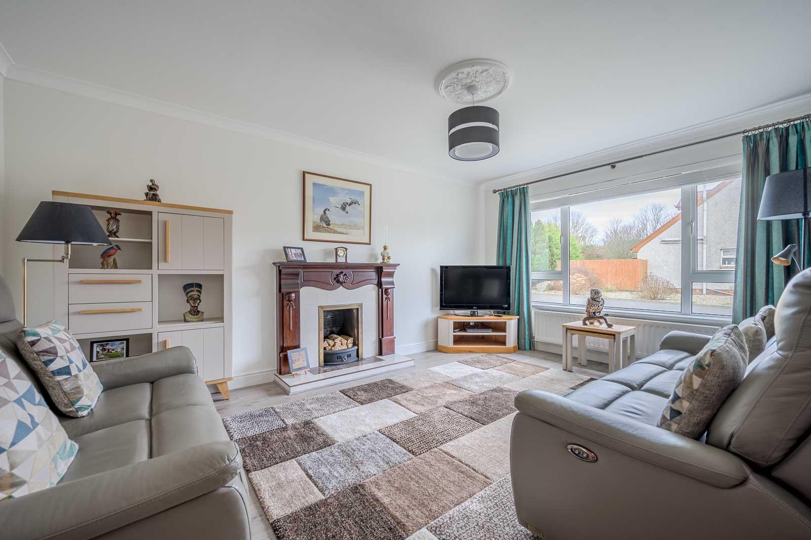 - Living Room with Attractive Mahogany Fireplace and Open Fire