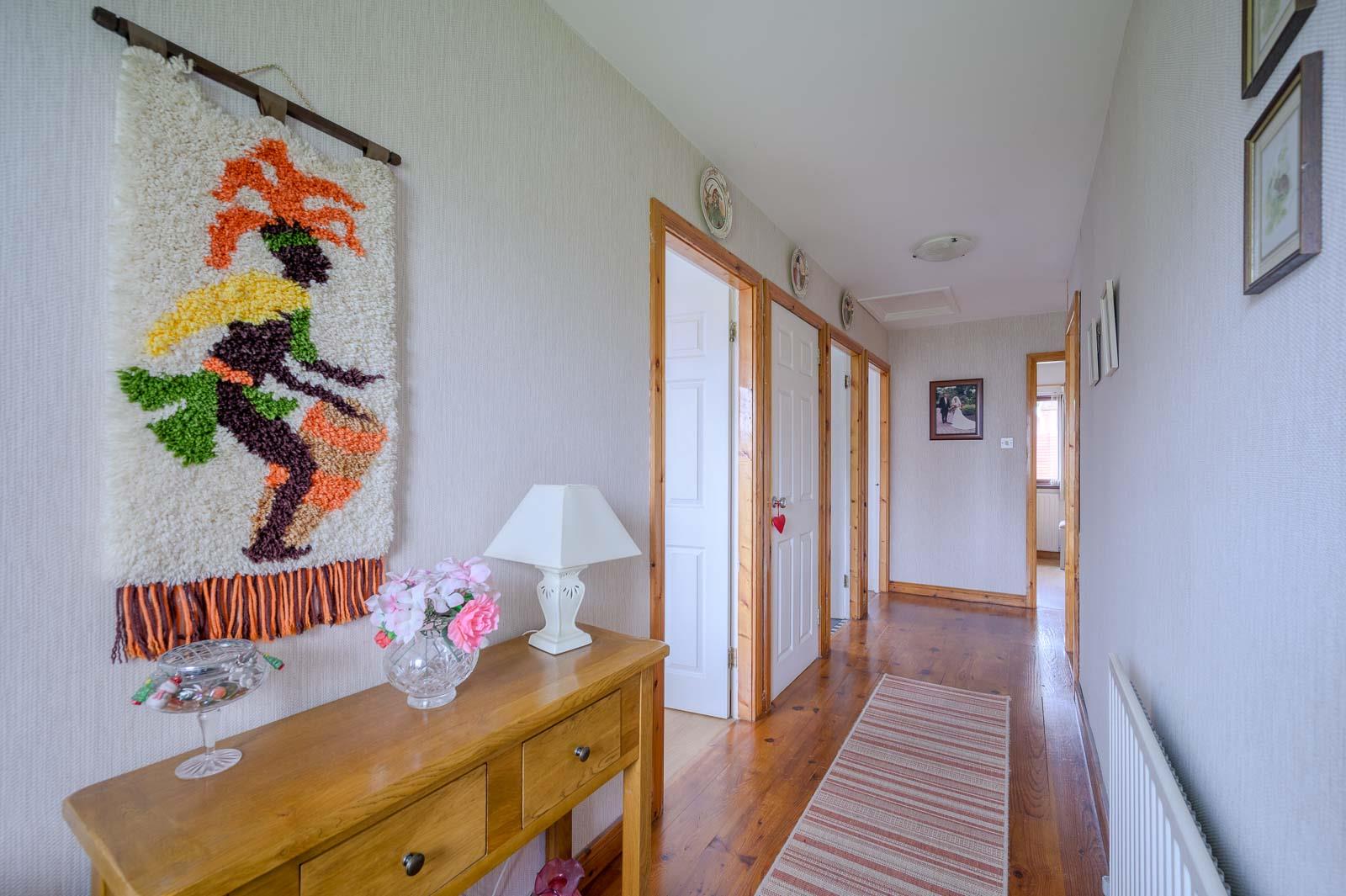 Reception Hall - Solid wooden floor, shelved hotpress with lagged copper cylinder, Willis type immersion, access to roofspace.