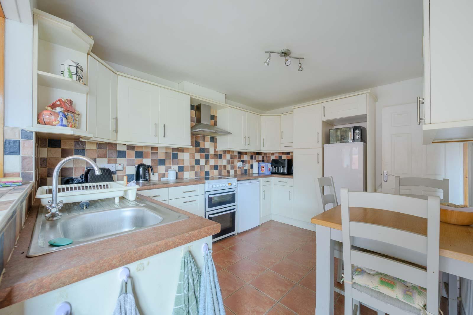The accommodation is bright, spacious and flexible comprising living room with cast iron wood burning stove and extended open plan kitchen to dining and family area with access onto the rear garden, three bedrooms, one of which has a range of built-in furniture, and a shower room with three piece suite.