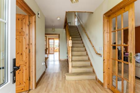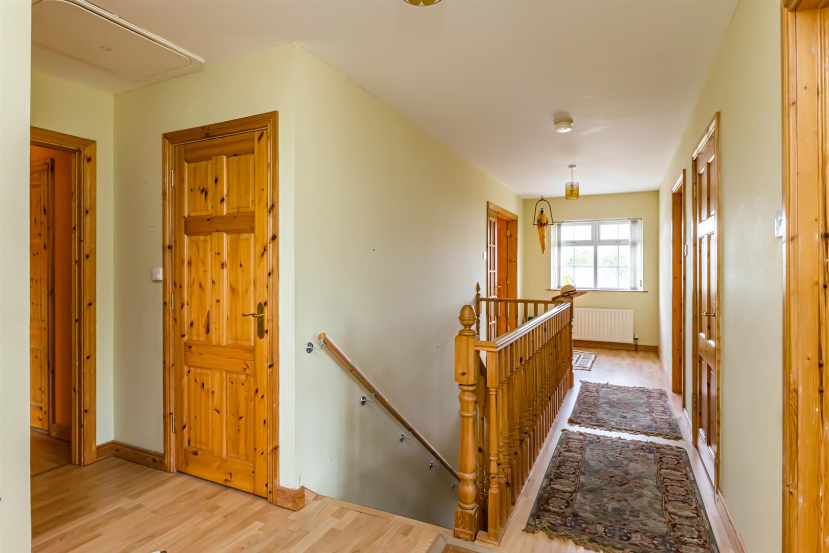 Landing - () - Laminate wood effect floor, hotpress with pressurised water system, shelved linen cupboard, access to roofspace.