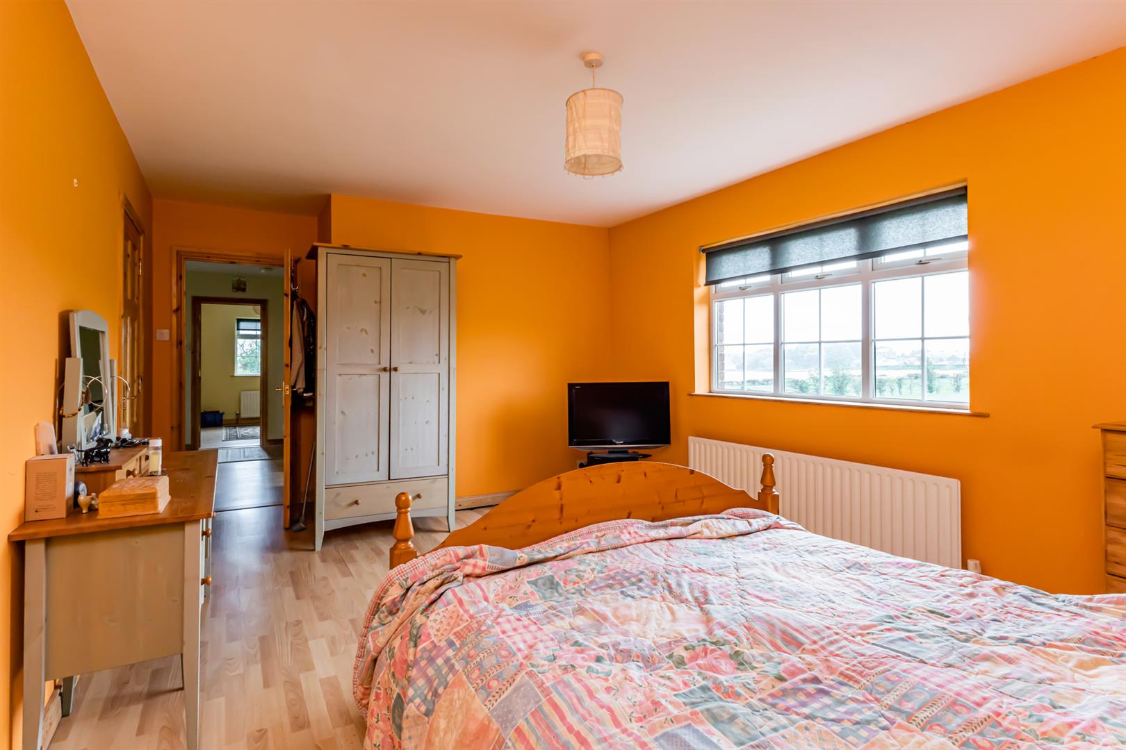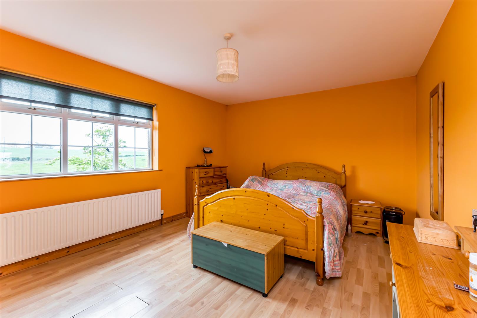 Bedroom (2): - (4.42m x 3.3m) - Picturesque country views, laminate wood effect floor.