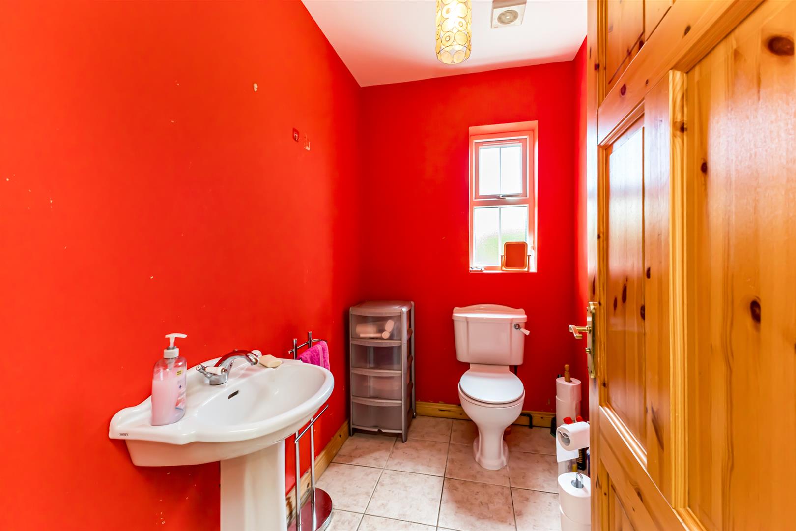 Downstairs Wc: - () - Two piece white suite comprising low flush WC, pedestal wash hand basin with mixer tap, fully tiled floor, extractor fan.