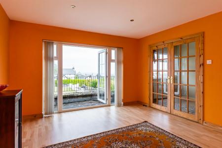 Family Room Or Potential Fifth Bedroom - (4.5m x 3.86m) - Views to Irish Sea, Donaghadee Sound and Copeland Islands, laminate wood effect floor, French doors with glazed insets from landing, uPVC double glazed French doors to balcony.