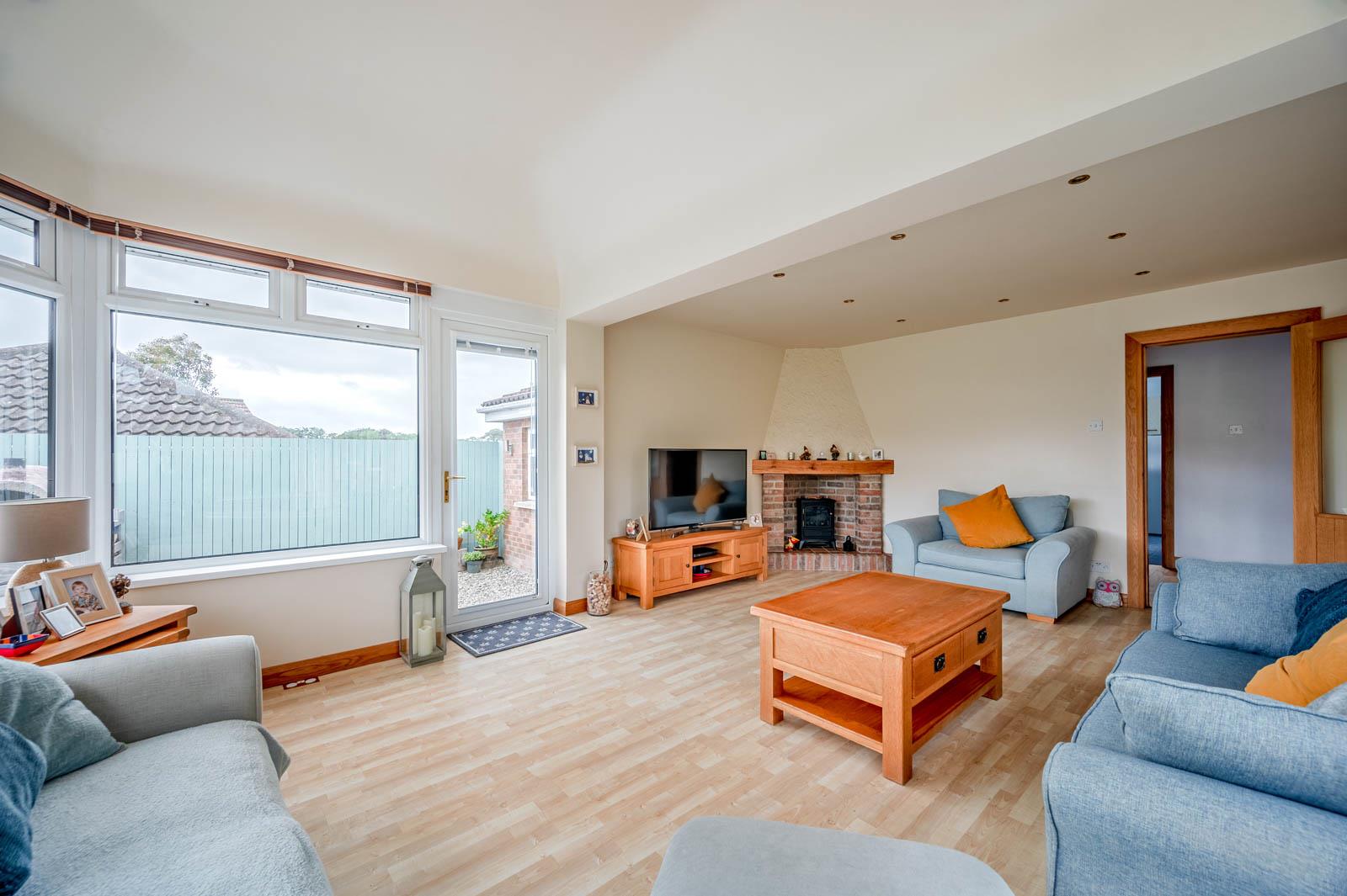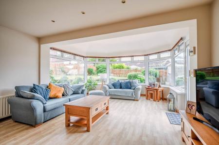 - Large Sun Room with Decorative Brick Fireplace and uPVC Double Glazed Door to Rear Garden