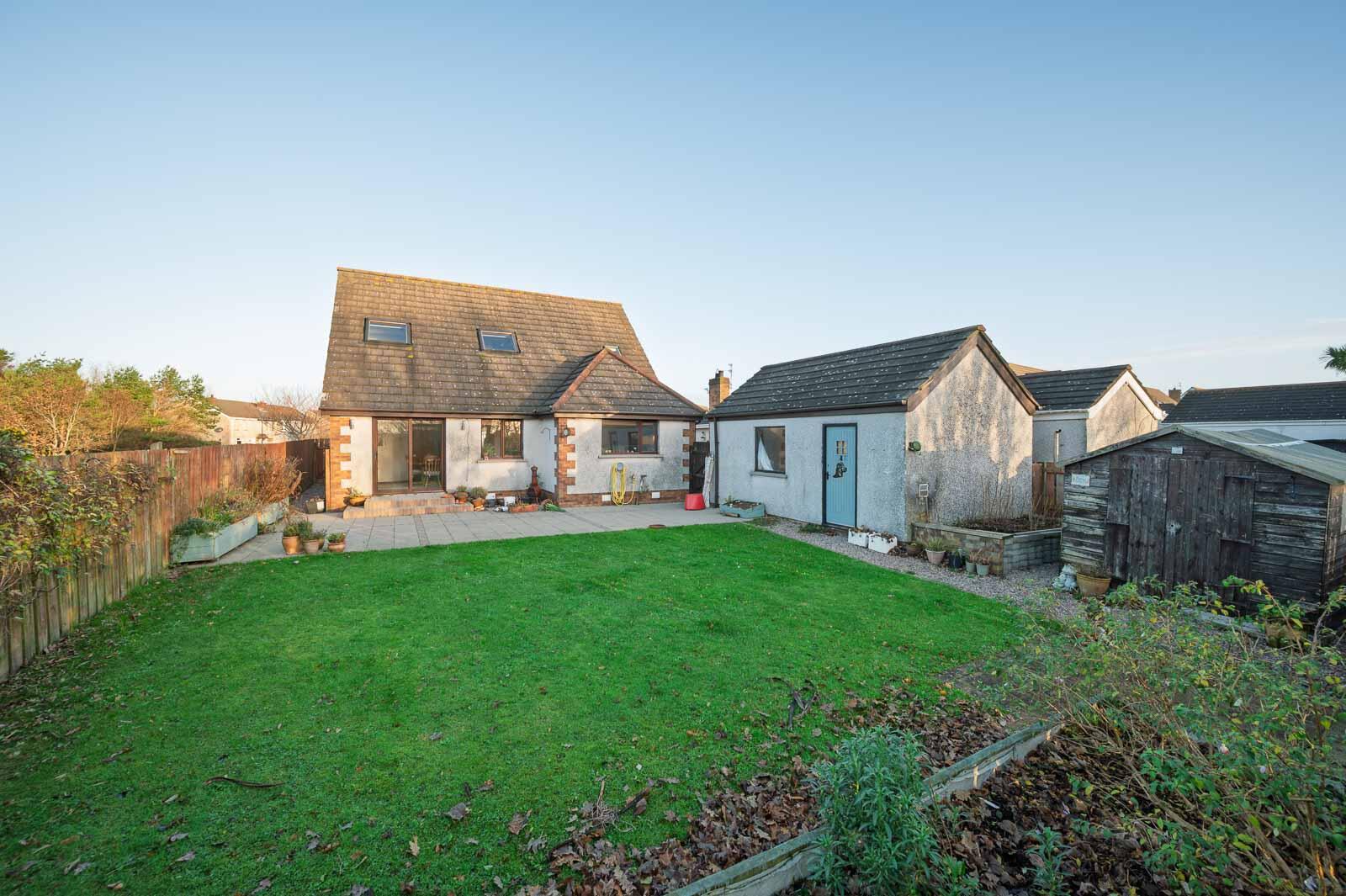 Outside - Front garden in lawns, driveway in loose stones with parking leading to detached garage, outstanding fully enclosed rear garden in lawns with extensive paved patio barbecue terrace, excellent degree of privacy and southerly aspect making it ideal for children at play, outdoor entertaining or enjoying the sun, views to the Water Tower.