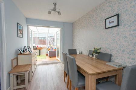 The property comprises of an entrance hall, lounge, dining room, fitted kitchen and conservatory extension. Upstairs there are three bedrooms and a family bathroom. The property has an easy to maintain rear garden with artificial lawn and off street parking for 2 cars on the front driveway.