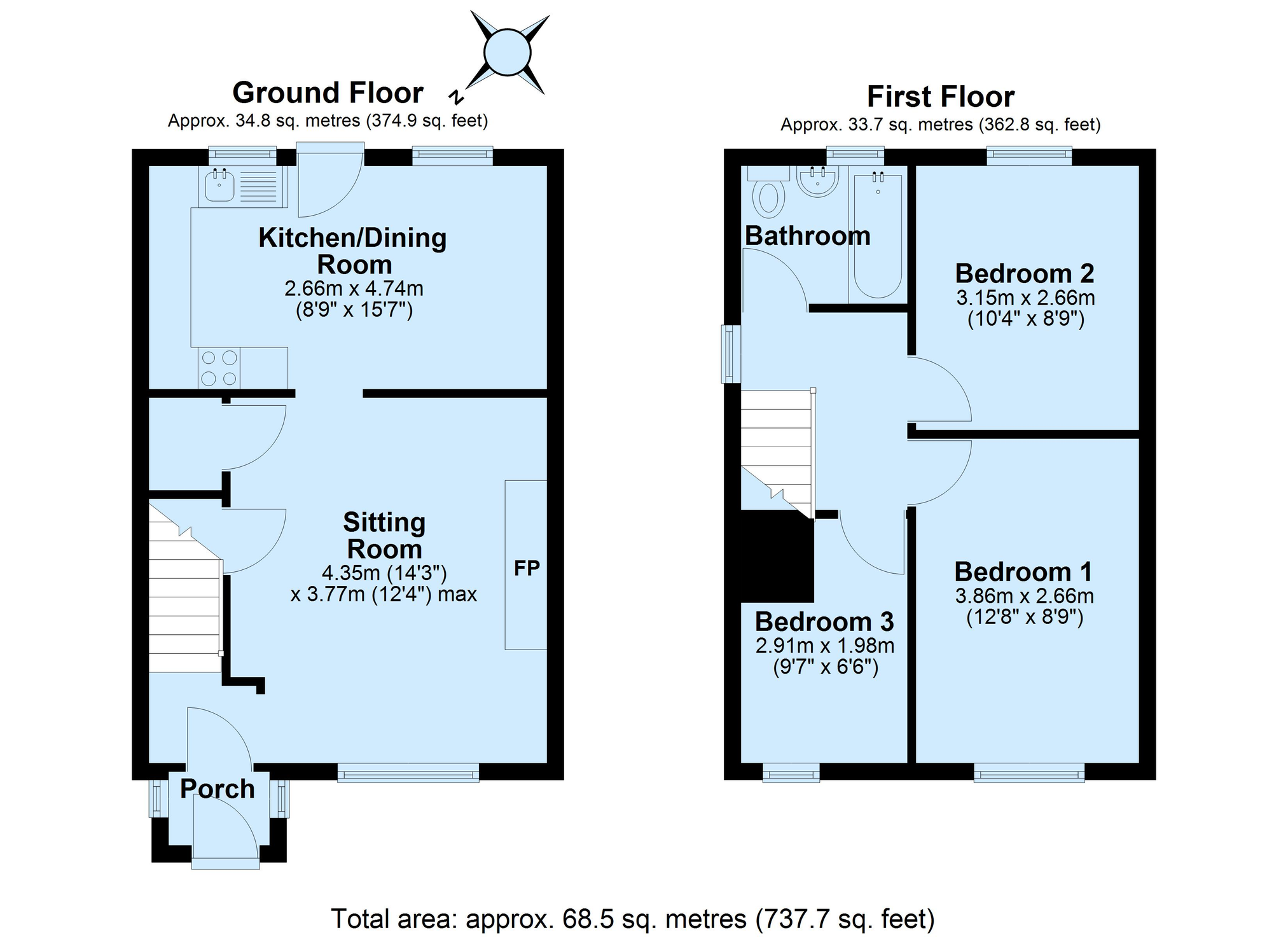 Upstairs, there are three bedrooms, two comfortable doubles and a single, together with a modern family bathroom.