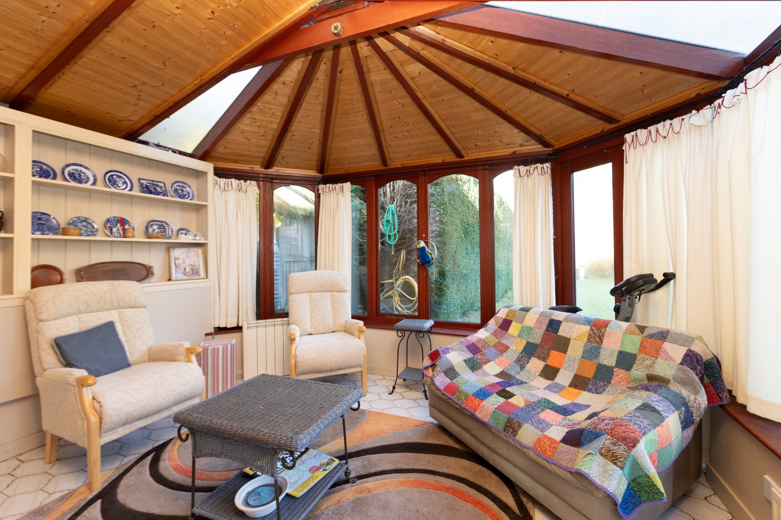 Boscobel enjoys an expansive plot measuring just over a third of an acre. The rear garden is beautifully maintained and notably private, laid mainly to lawn with established planting and a rockery feature. To the rear of the garden is a decommissioned swimming pool, which could be reinstated if required. To the front, there is a further well-kept lawned garden with a variety of mature shrubs, alongside a gravel driveway leading to a dedicated parking area.