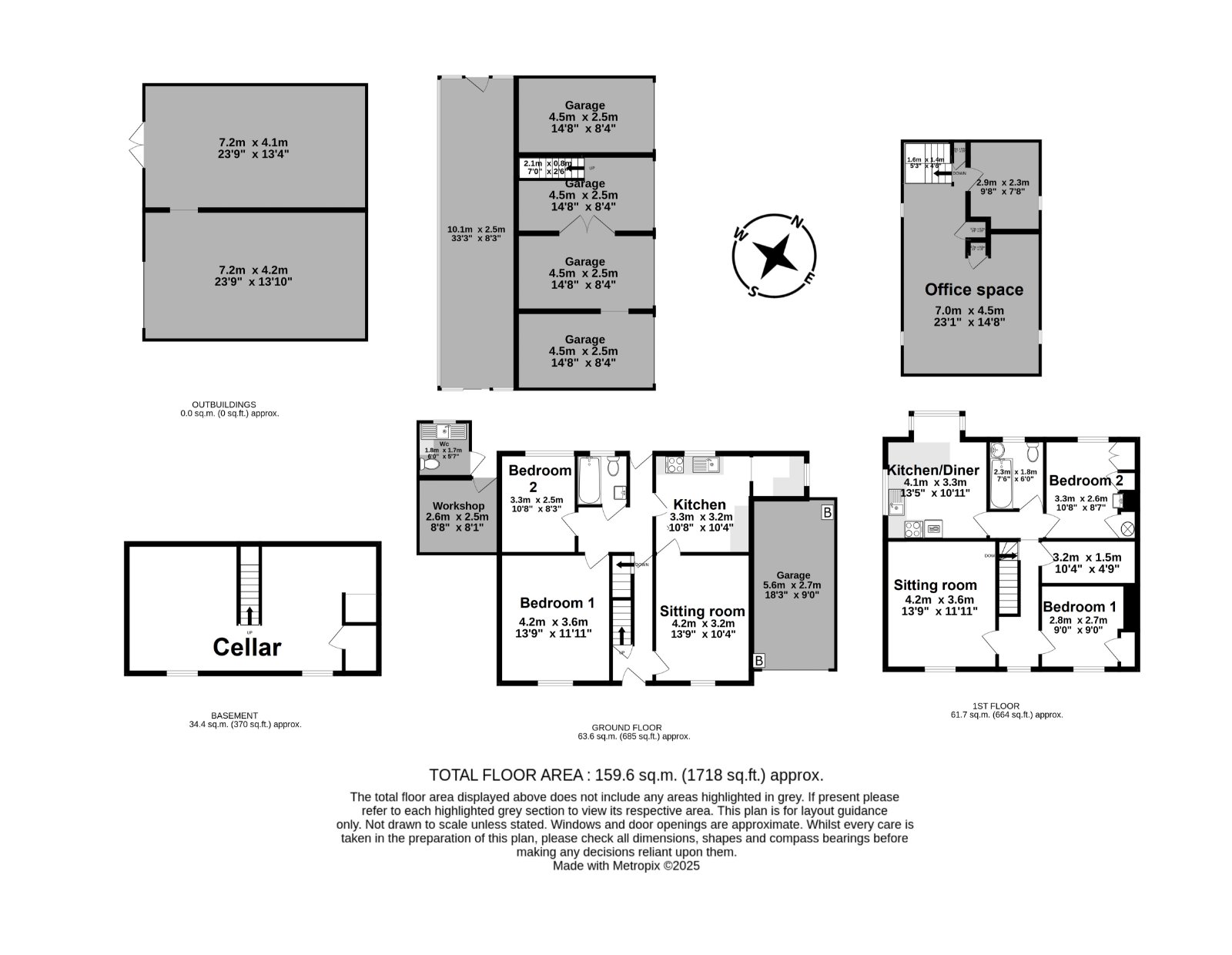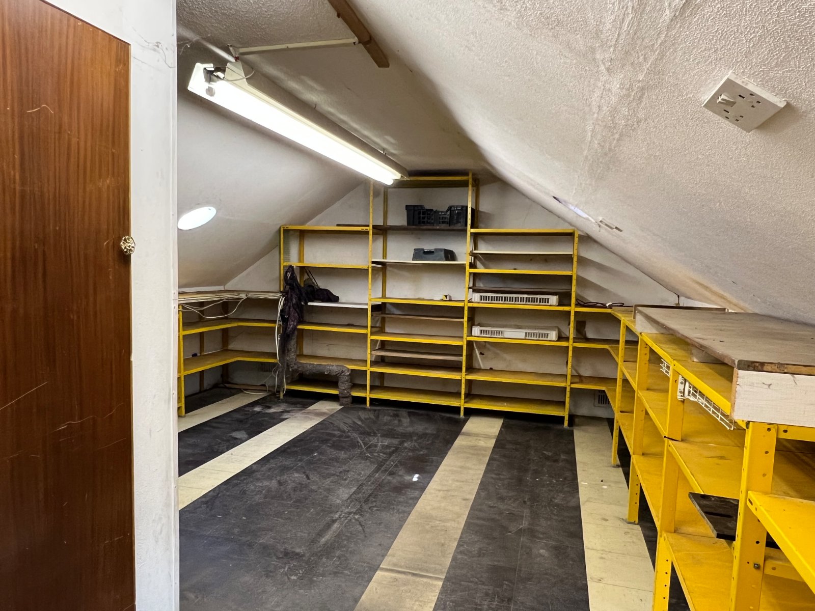 To the side is a driveway which leads to a concrete yard area and the land at the rear. Currently comprising of a variety of outbuildings including a block of 4 garages with an office area above as well as a number of other workshops and storage areas, most with power connected, and an outside toilet.