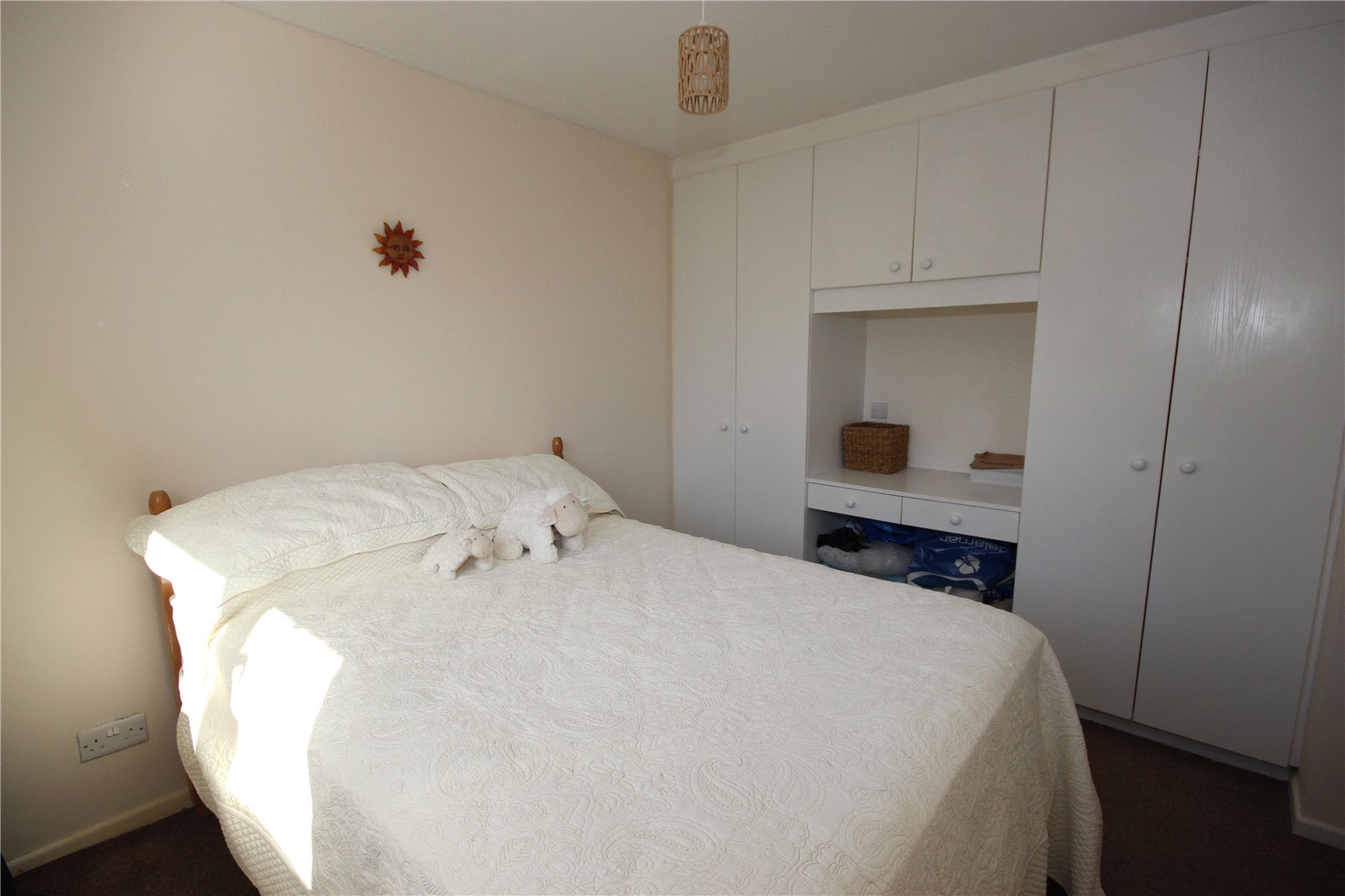 Stairs rise to the first floor landing with an airing cupboard. The property has three bedrooms. Bedroom one is at the front of the property which is a good sized double room, with views to the front towards the sea in the distance. Bedroom two is another good sized double bedroom with fitted wardrobes and window to rear overlooking the garden, and bedroom 3 being a smaller single room. The bathroom comprises a curved p-shaped bath with shower over, WC and wash basin set over a vanity unit within a mix of cupboards, fully tiled walls and patterned tile effect flooring.