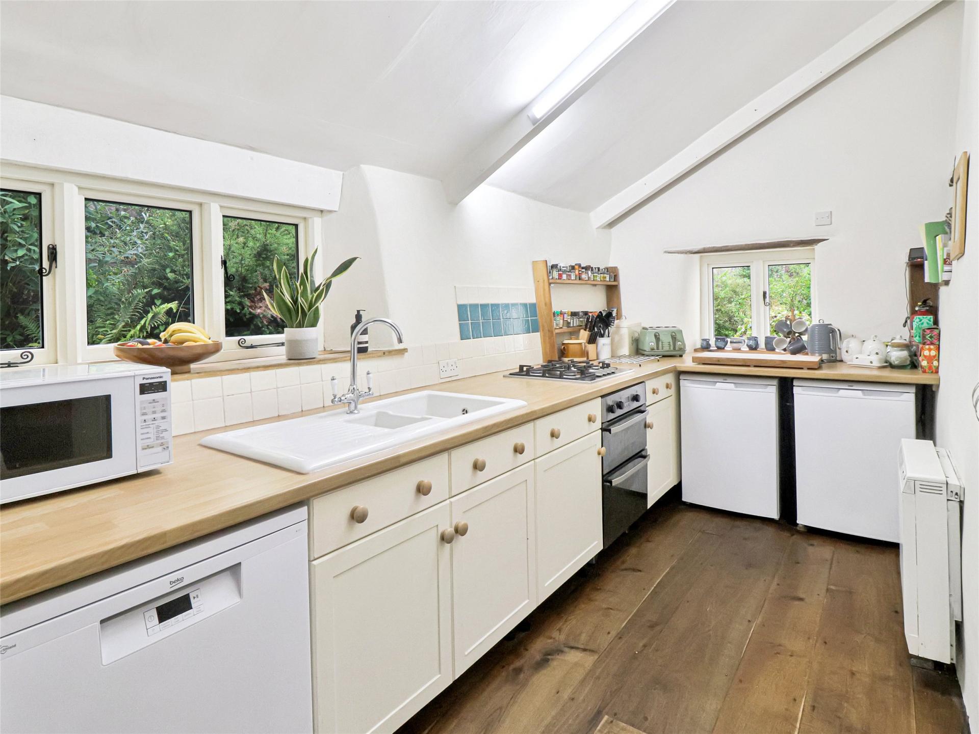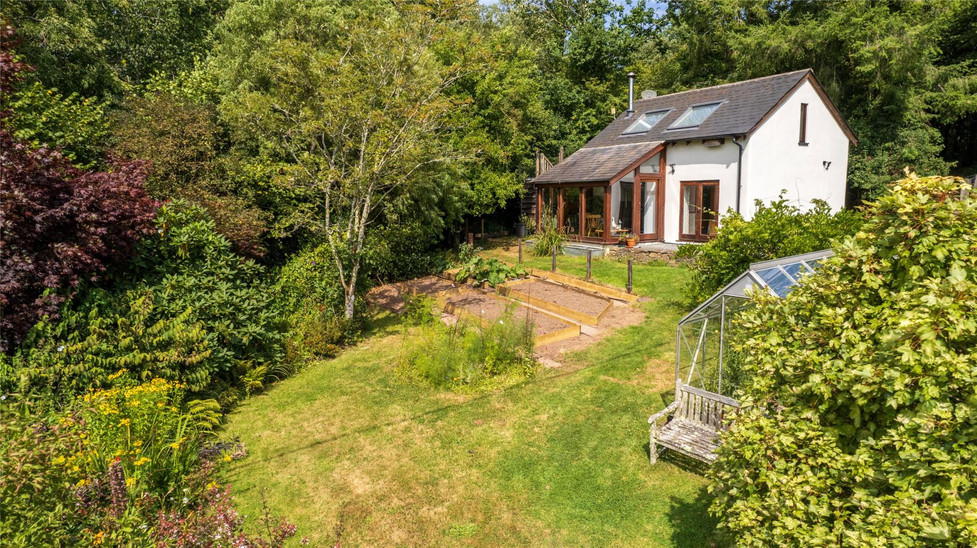 What truly sets this property apart is its exceptional setting being approximately 3.75 acres of woodland and rewilded grounds. The formal garden stretches out from the cottage, mostly laid to lawn, and interspersed with herbaceous borders, apple trees, and raised vegetable beds.