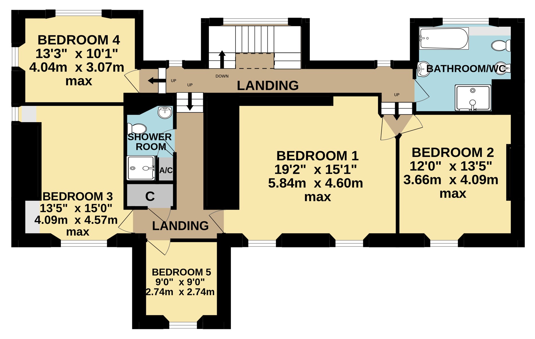 - Five bedrooms
