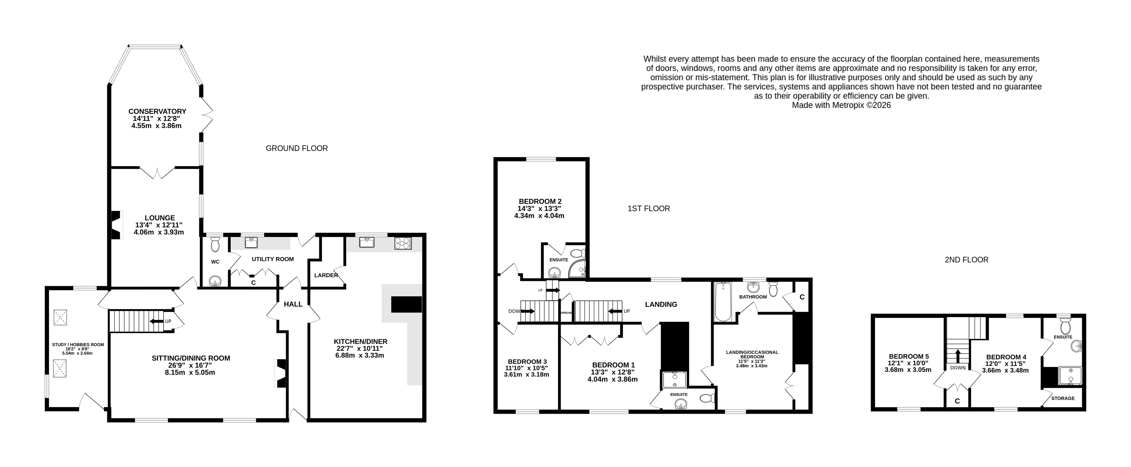 - Main farmhouse arranged over three floors with four reception rooms and highly adaptable accommodation