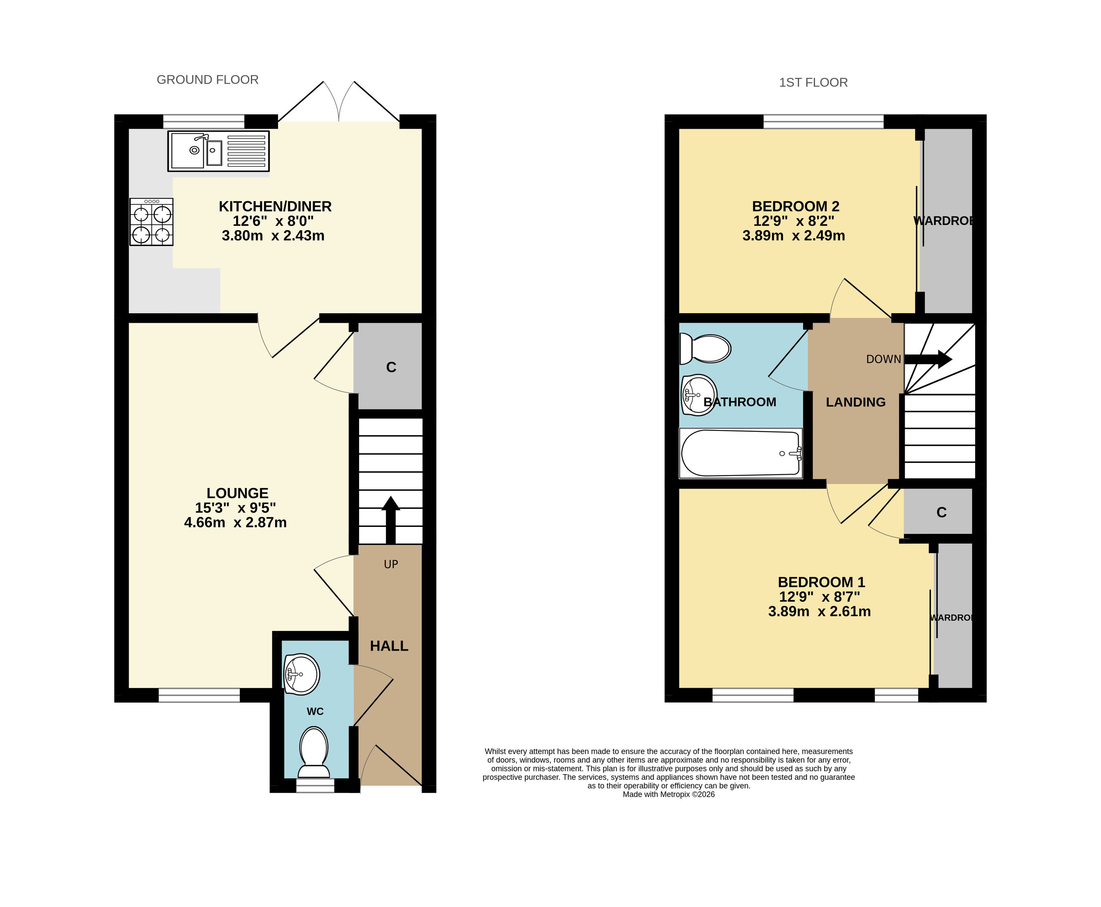 Upstairs, there are two double bedrooms, both benefiting from built in wardrobes. Rounding off the upstairs is a modern three-piece suite bathroom completing the accommodation.