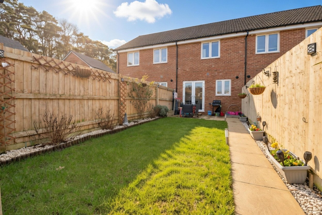 Externally, the rear garden benefits from an extended patio area, a generous lawn and a garden shed, with rear pedestrian access onto a small lane ideal for bin storage. To the front, there are two off-road parking spaces, a valuable feature in this location.
