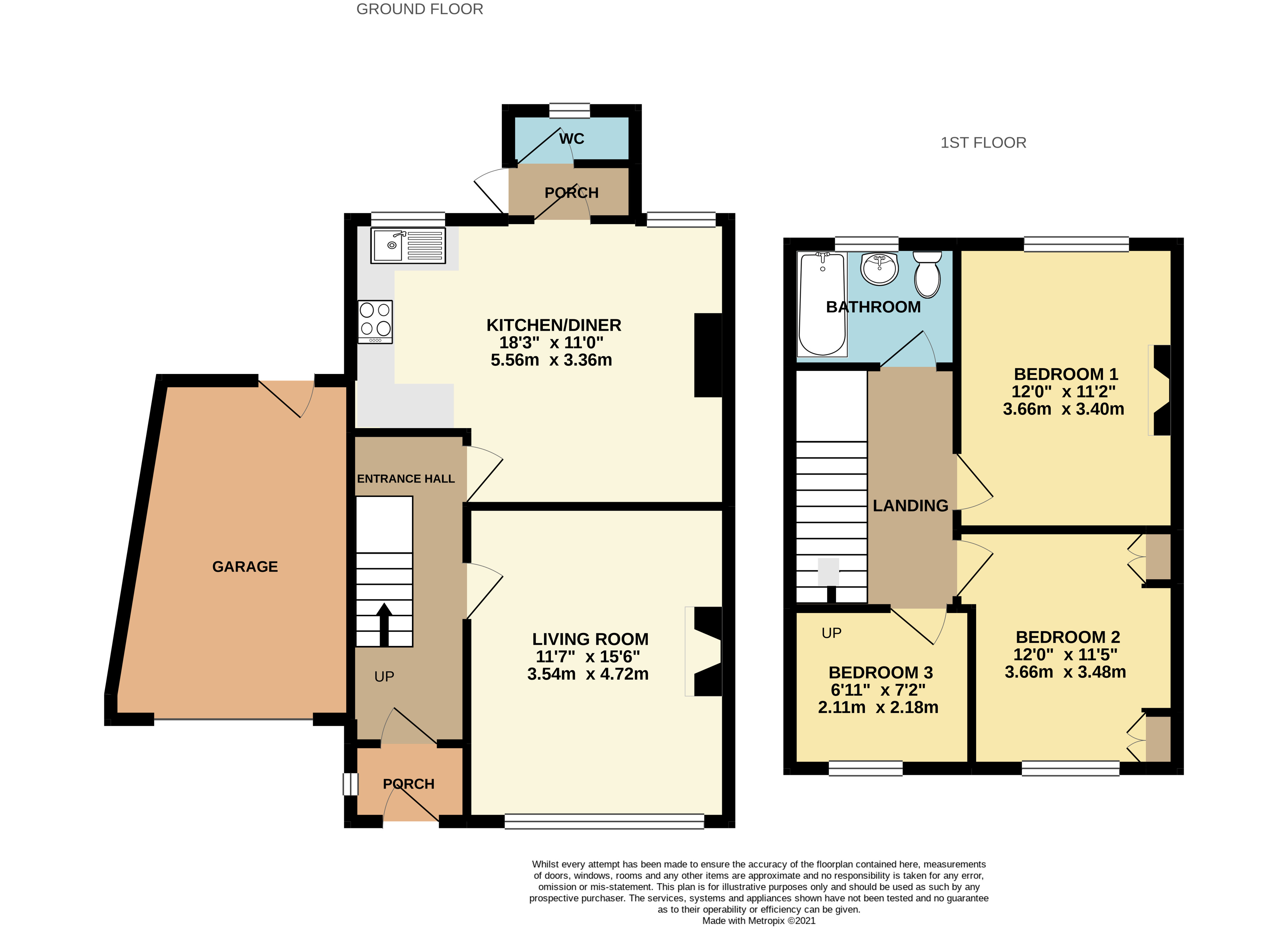 Bedroom 2 12' x 11'5" (3.66m x 3.48m).