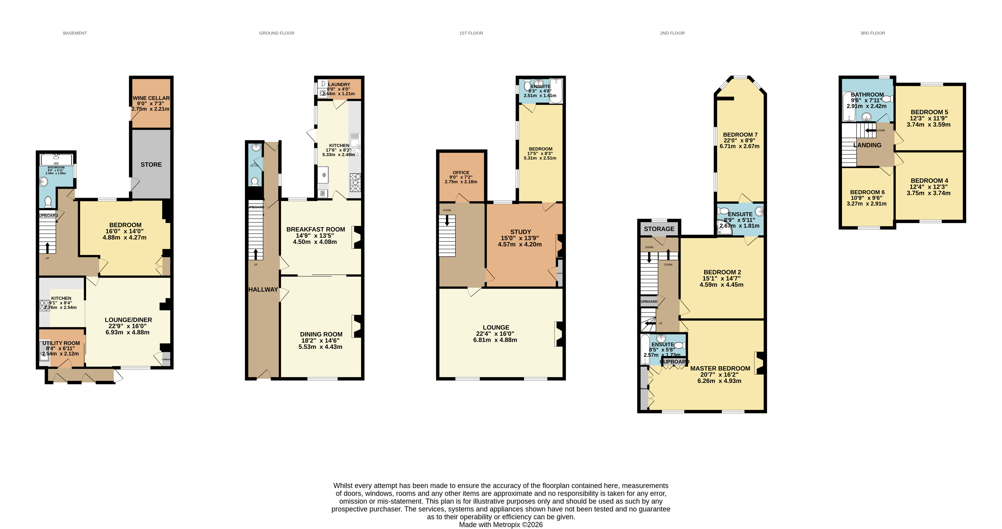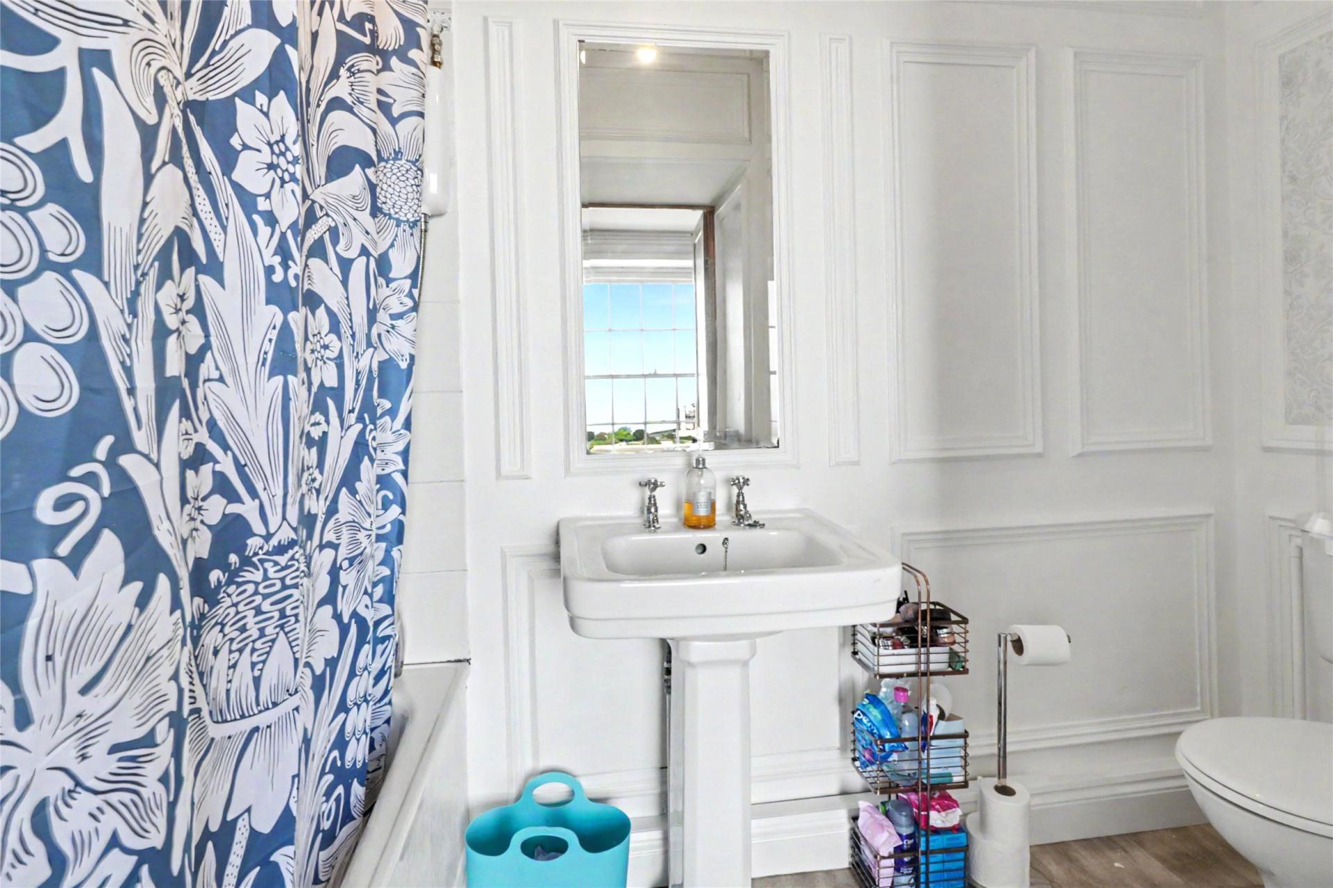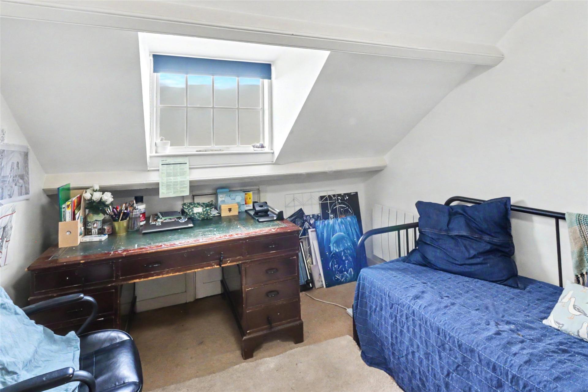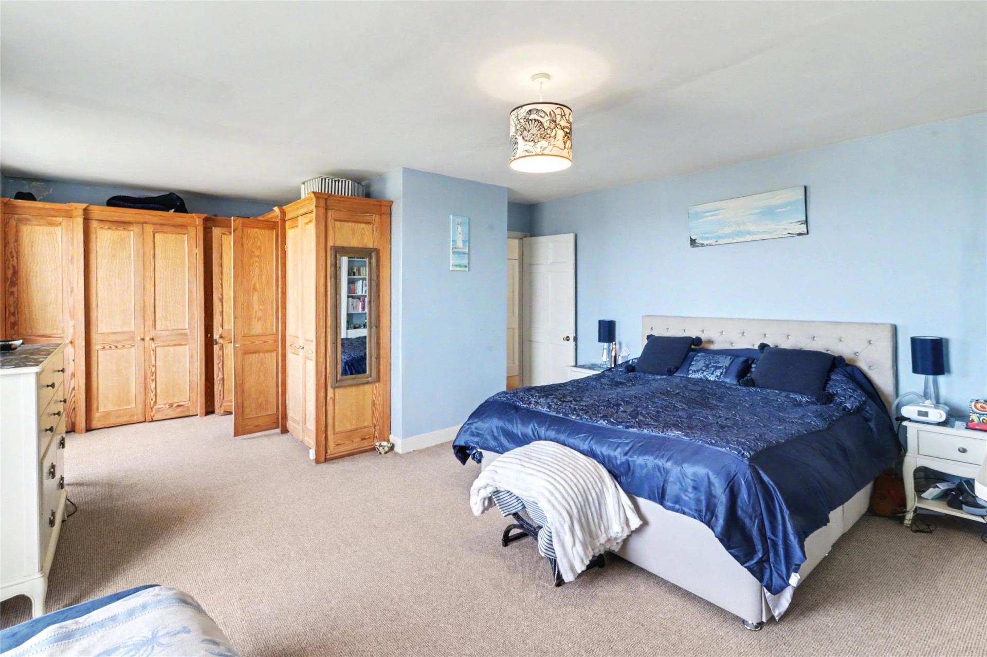 The second floor continues the sense of generous accommodation, with the principal bedroom enjoying fine sea views and a range of fitted wardrobes which also conceal the en suite bathroom behind them. A further bedroom has its own en suite shower room and connects to a studio, study or further bedroom, adding yet more flexibility to the layout. On the top floor there are 3 further bedrooms and a family bathroom, with sea views again enjoyed from selected rooms.
